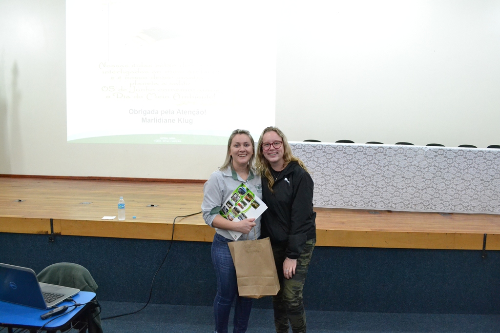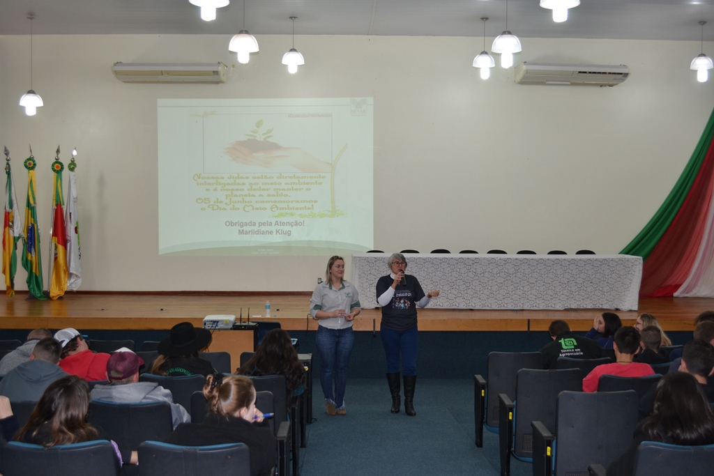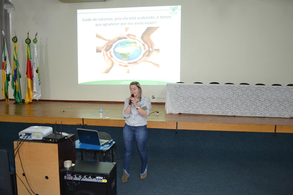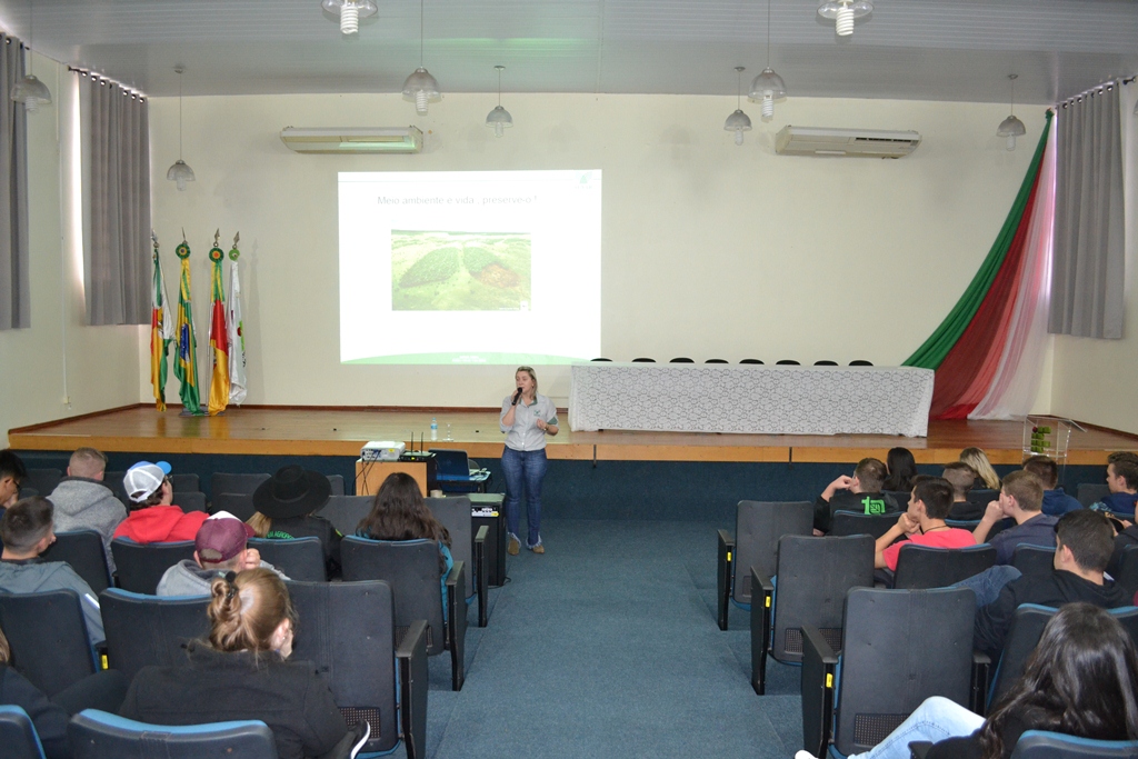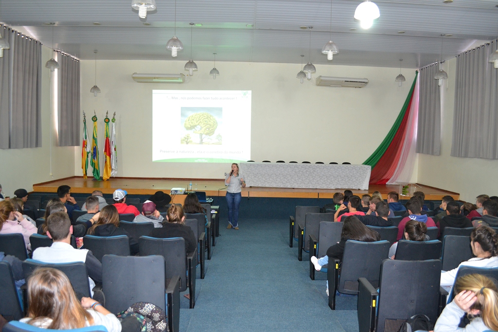 As atividades iniciaram às 15h30, no auditório da instituição, com a palestra “Meio Ambiente: sua atitude faz toda a diferença”, ministrada pela instrutora do SENAR-RS, Marlidiane Trindade Klug, a qual destacou para os estudantes a importância de cada um fazer sua parte na preservação do Meio Ambiente, evitando principalmente jogar lixo em locais indevidos.
