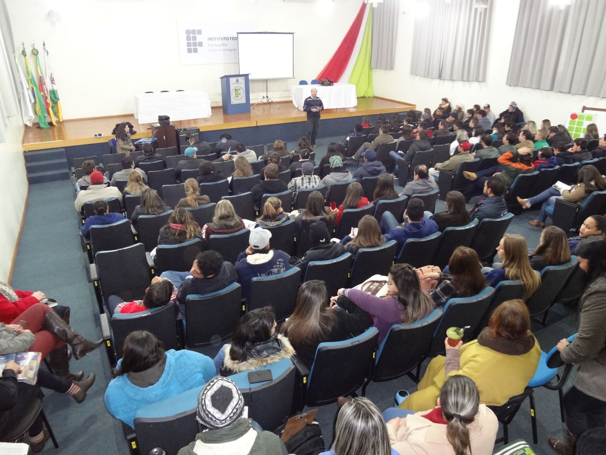 Na noite de segunda-feira, dia 20, o Professor Agrônomo Roberto Carbonera (UNIJUÍ), esteve no auditório do Campus Santo Augusto, falando sobre "O uso de agrotóxicos e suas implicações" a servidores e alunos dos cursos de Licenciatura em Ciências Biológicas, Tecnologia em Agronegócio, Tecnologia em Alimentos e Técnico em Agroindústria – PROEJA.