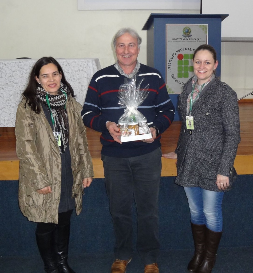 O evento foi organizado pelas coordenações dos cursos de Licenciatura em Ciências Biológicas (Inaiara Rosa de Oliveira) e Tecnologia em Agronegócio (Lidiane Cristine Walter), do Campus Santo Augusto, como parte das atividades acadêmicas do semestre. O objetivo foi proporcionar aos alunos o contato com um profissional experiente e atuante na região. Nas fotos, um dos momentos da palestra, e o convidado da noite, recebendo um mimo das coordenadoras Inaiara e Lidiane.