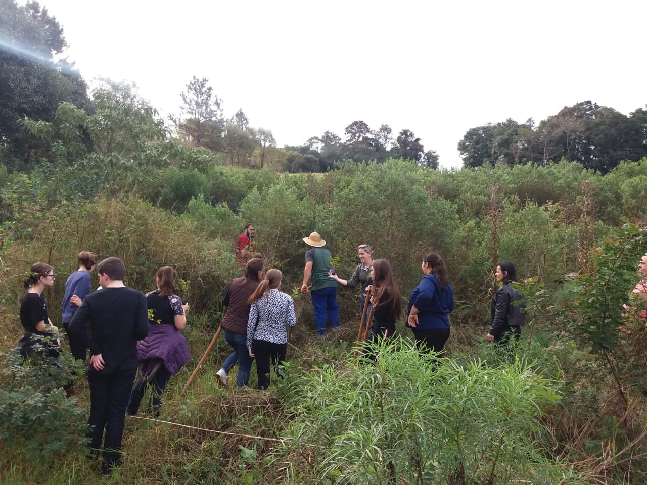 No encerramento das atividades, na sexta-feira à tarde, para marcar a Semana do Meio Ambiente, foi realizada na área do campus, uma prática para reconhecimento de nascente e o plantio de mudas de espécies nativas, produzidas na instituição, para conservação dessa nascente.