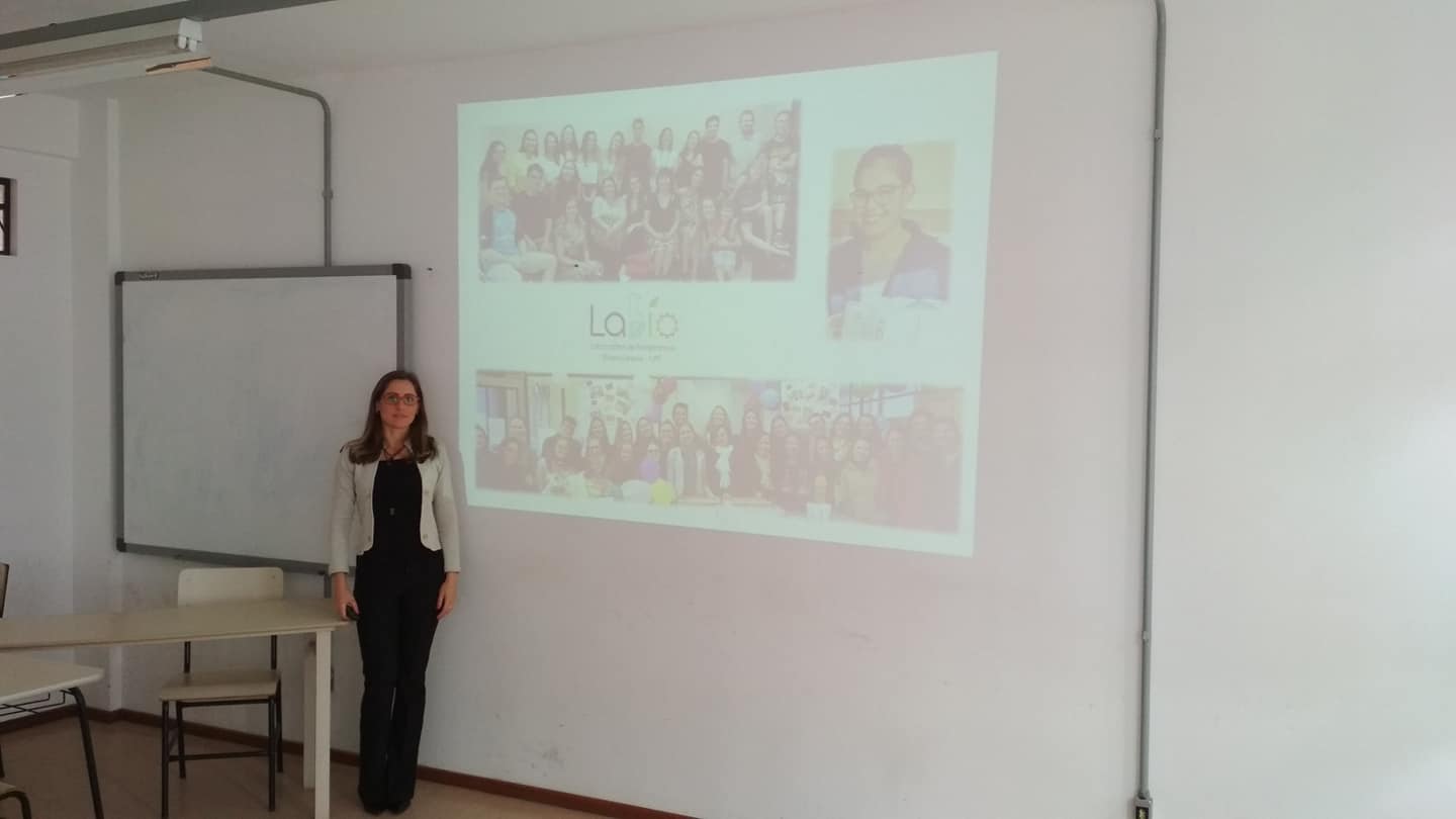 A professora explica que os conteúdos de maior correspondência e relevância para os cursos foram elencados e distribuídos entre os alunos participantes do projeto, que estão alocados em 8 grupos. Os grupos devem pensar estratégias para a criação de jogos, partindo de uma revisão de literatura e pesquisa sobre jogos que já tenham sido produzidos e que apresentam boas expectativas de resultados no ensino (por exemplo: jogos de tabuleiro, jogos de cartas, perguntas e respostas – “quiz”...).