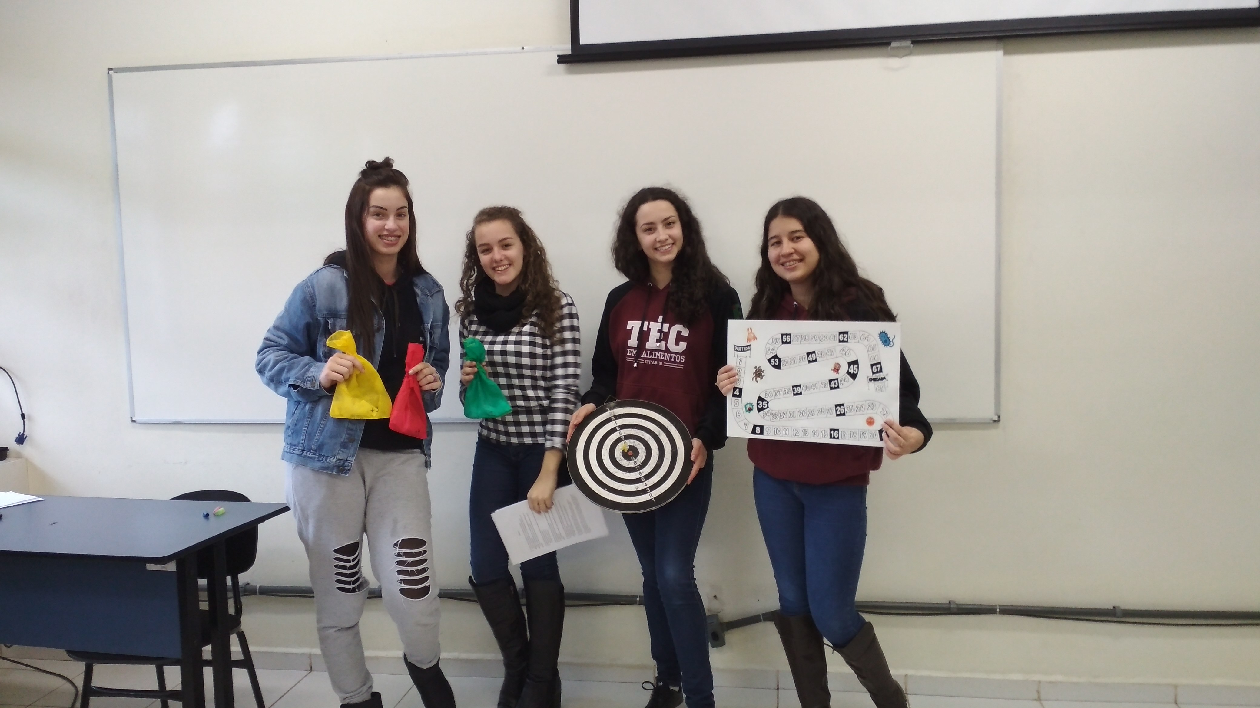 Apesar da estrutura de laboratórios existente no IFFar – Campus Santo Augusto, algumas associações práticas relacionadas ao assunto não podem ser realizadas e necessitam de um embasamento teórico, para que o aluno entenda as relações e consequências da presença de microrganismos nos alimentos, pensando nisso a professora Cíntia Guarienti está desenvolvendo ao longo desse ano o projeto de ensino, “Produção de jogos didáticos para o ensino de microbiologia e conservação de alimentos”, tendo como bolsista a estudante, Luana Vitória Barcellos da Silva e como voluntário o estudante, Lucas Bettio.