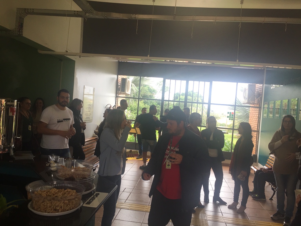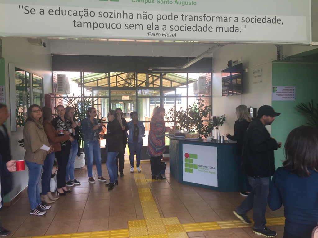 Na manhã desta terça-feira, dia 15 de outubro, dia do Professor, os servidores do IFFar – Campus Santo Augusto (Professores e Técnicos Administrativos em Educação), participaram de um café no hall de entrada da instituição e depois assistiram no auditório a peça teatral “Reviravoltas do Coração”, apresentada pelo grupo de teatro Turma do Dionísio.
