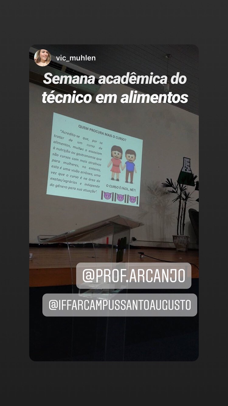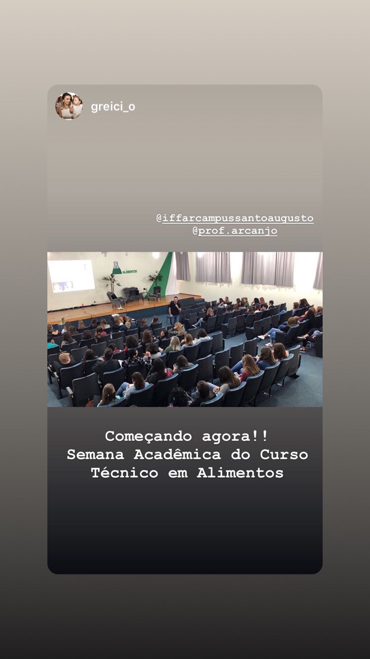 Na quarta-feira pela manhã os estudantes do curso técnico iniciaram as provas da gincana de integração. À noite às 19h, ocorreu o Encontro de Egressos do Curso de Tecnologia em Alimentos, com a participação de onze Tecnólogos em Alimentos formandos pelo IFFar – Campus Santo Augusto.