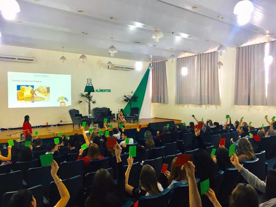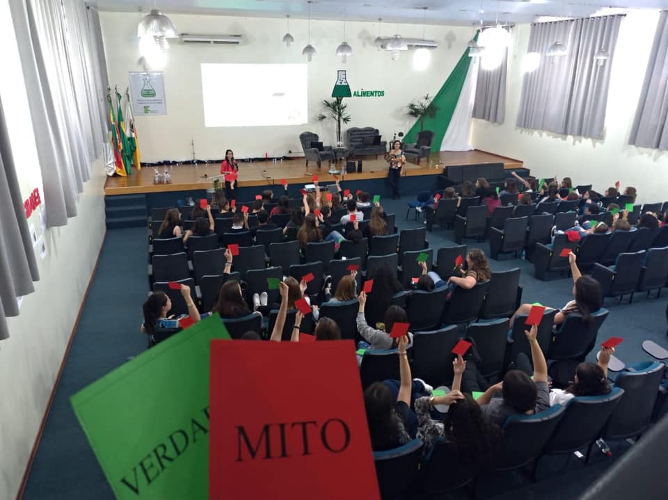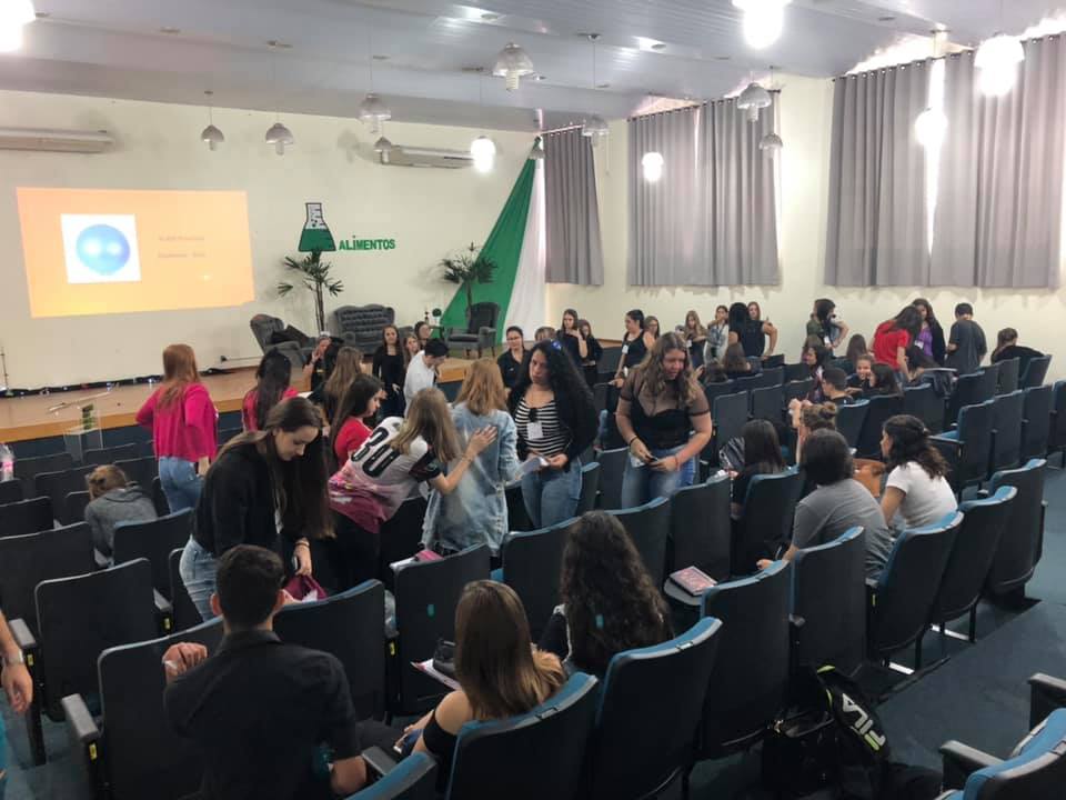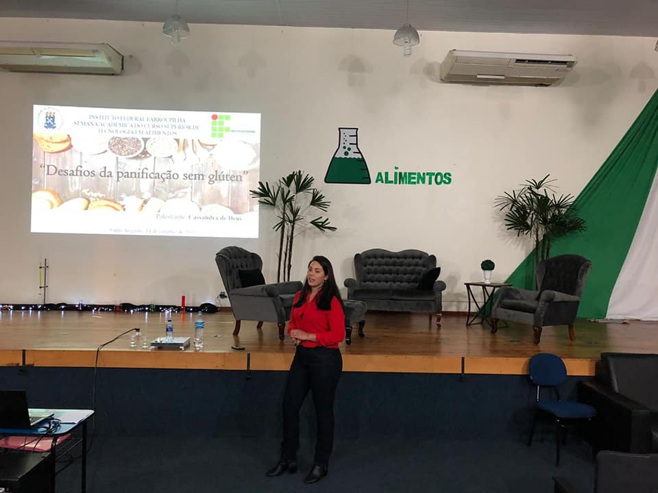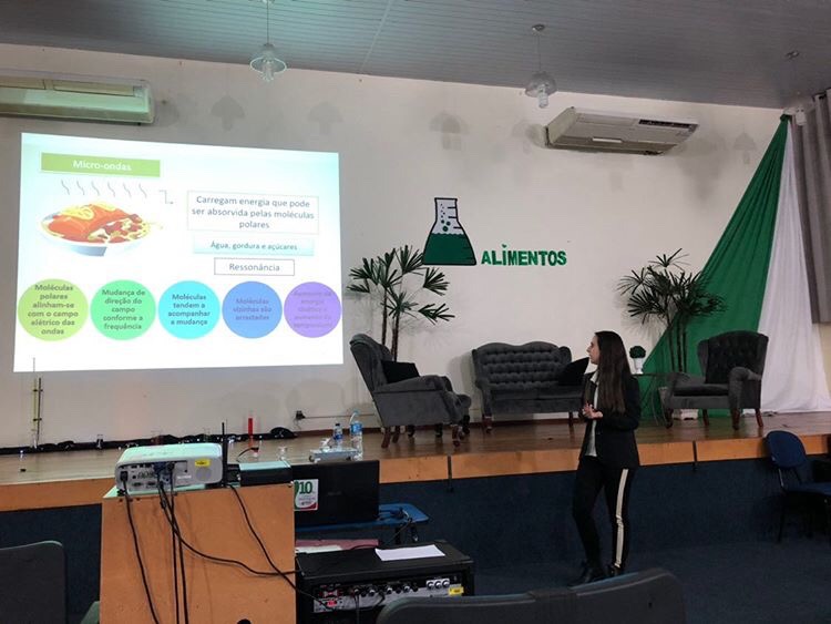 O evento teve início na noite de segunda-feira dia 14, às 19h15, com a Abertura Oficial, seguida pelas palestras: “Biotecnologia”, com a Doutoranda em Ciência e Tecnologia de Alimentos (UFSM), Simara Somacal; “Descontaminação de alimentos por Microndas”, com a Doutoranda em Ciência e Tecnologia de Alimentos (UFSM), Thaiane Marques da Silva e “Desafios da Panificação sem glúten” com a Tecnóloga em Alimentos (mestranda UFSM), Cassandra de Deus.