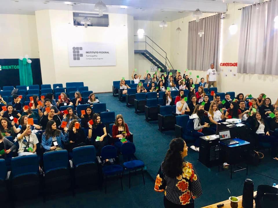Na quinta-feira pela manhã aconteceu a Roda de conversa “Os obstáculos da vida após o ensino médio”, ministrada pelos professores: Dr. Aelson Aloir Santana Brum, Drª. Cíntia Guarienti, Drª. Greici Oliveira, Drª. Melissa dos Santos Oliveira, Ms. Djenifer Kirch Kipper e Janaina Amantina Muller. Á tarde aconteceram as oficinas para os estudantes do curso técnico, sobre: “Aproveitamento do leite e reaproveitamento do soro de leite”, com as professoras, Jananina Amantina Muller e Djenifer Kirch Kipper; “Reaproveitamento da casca de batata doce”, com o estudante Lucas Nachtigal Duarte; “Plástico filme biodegradável”, com Ms. Diogo Santiago e o Professor Dr. Aelson Aloir Santana Brum; “Reaproveitamento de alimentos”, com a nutricionista da prefeitura municipal de Santo Augusto, Taize Rodrigues. À noite aconteceu a palestra sobre “Mitos e verdade sobre os alimentos”, com as Doutorandas em Ciência e Tecnologia de Alimentos (UFRGS), Fernanda Camboim Rockett e Helena de Oliveira Schmidt Schardong.