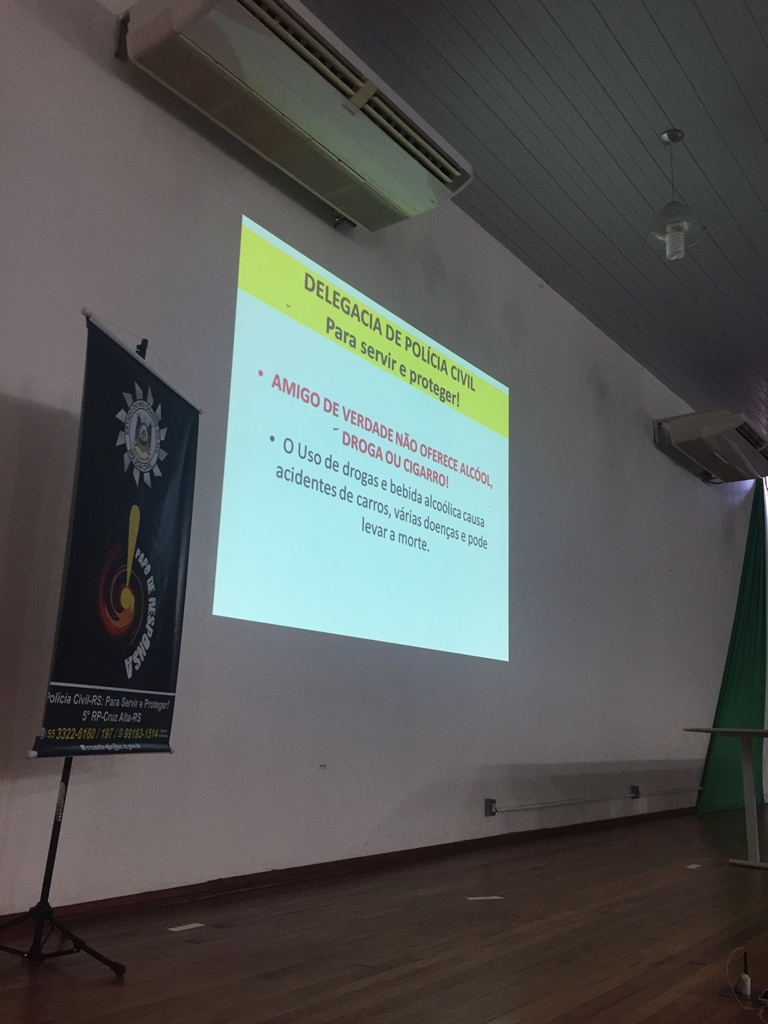 A Delegada Caroline trouxe para a instituição a palestra do “Programa Papo de Responsa”, desenvolvido desde 2016 pela Polícia Civil do Rio Grande do Sul, com atuação junto às escolas de ensino fundamental e médio, na promoção de um diálogo descontraído sobre prevenção à violência e o papel do policial na sociedade, tendo como público alvo a interlocução com crianças, adolescentes e jovens. Também é falado sobre Bullying, violência, e os atos infracionais e seus desdobramentos.
