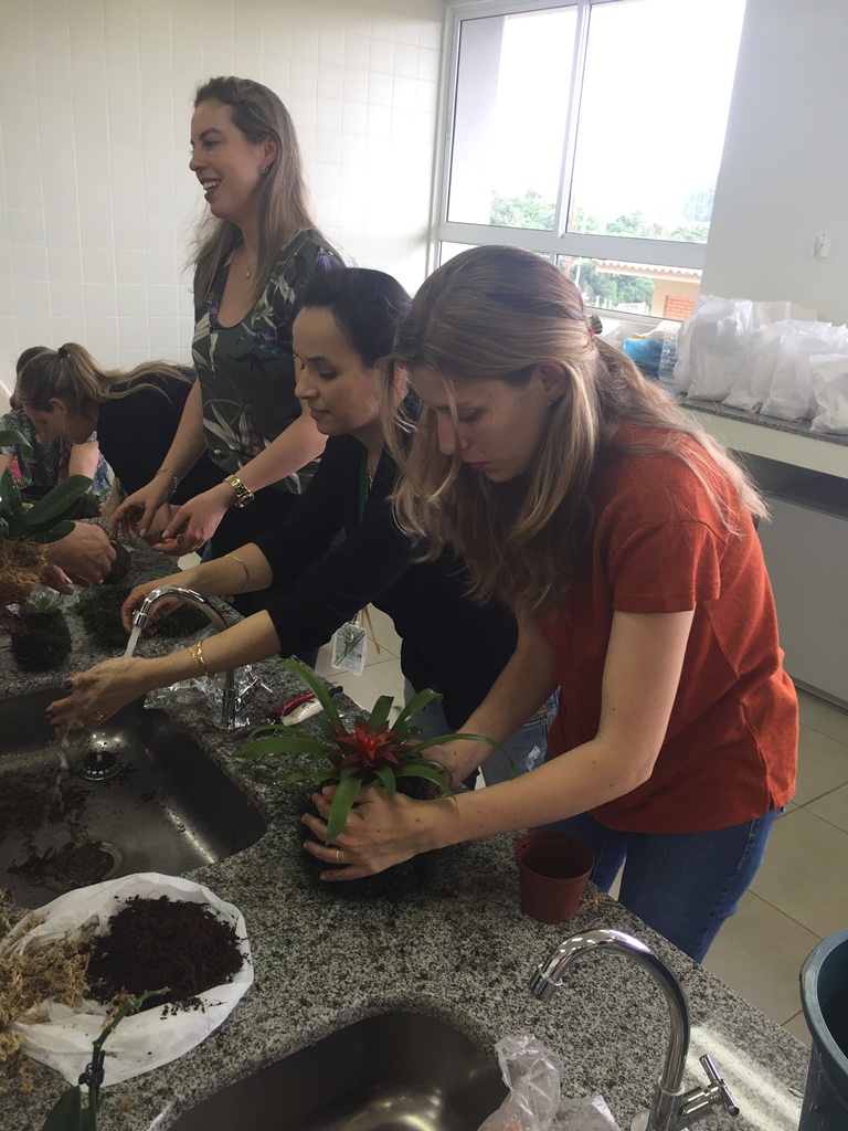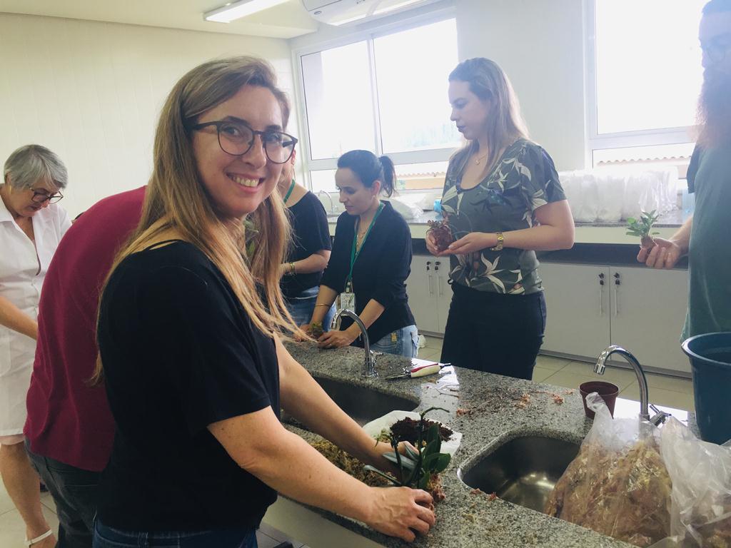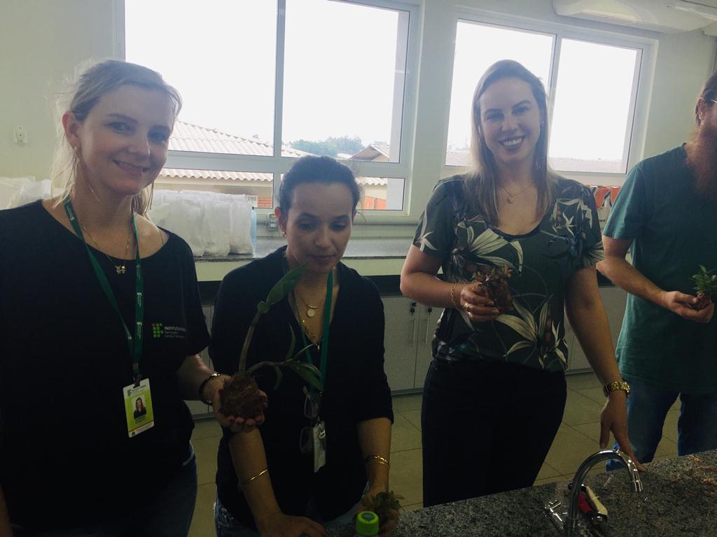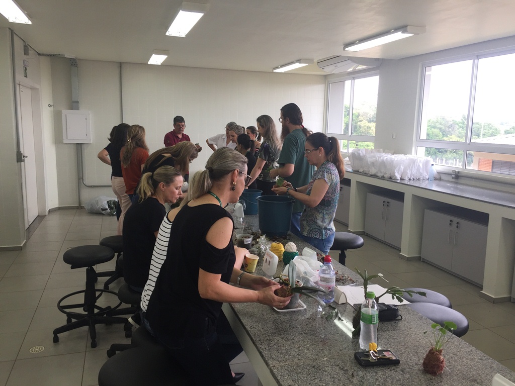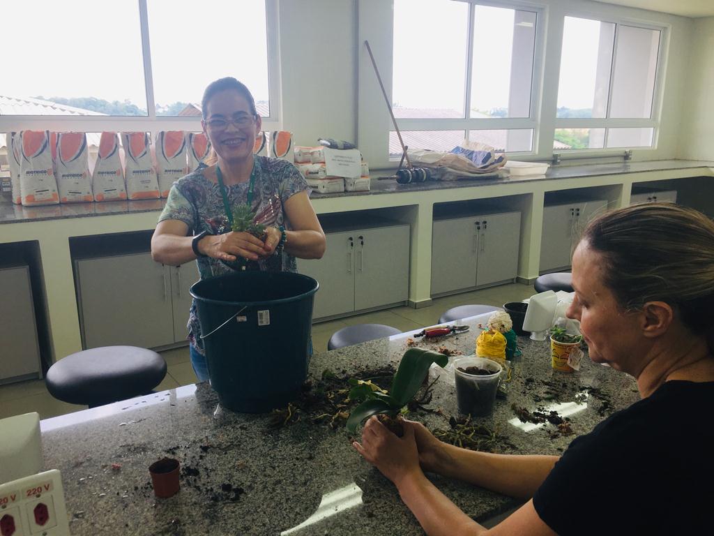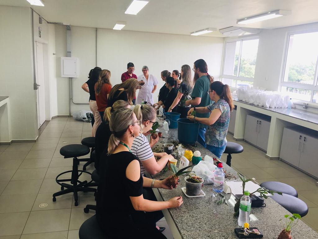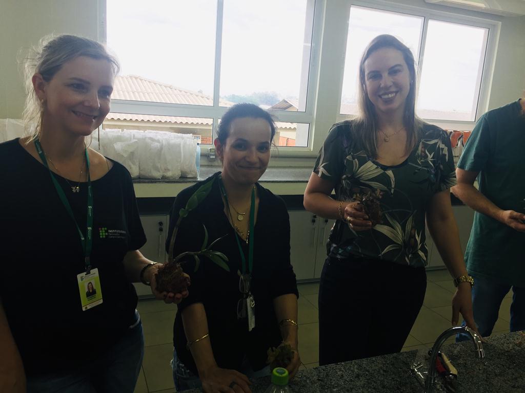 Encerrando as atividades da Quinzena, no dia 30 de outubro, das 13h15 às 14h45, aconteceu a oficina de Kokedamas, ministrada pelo professor Tarcísio Samborski, onde foram produzidos arranjos com plantas de diferentes espécies. Após a oficina, os servidores participaram da reunião geral e ao final foram convidados para uma pequena confraternização pela passagem do Dia do Servidor.