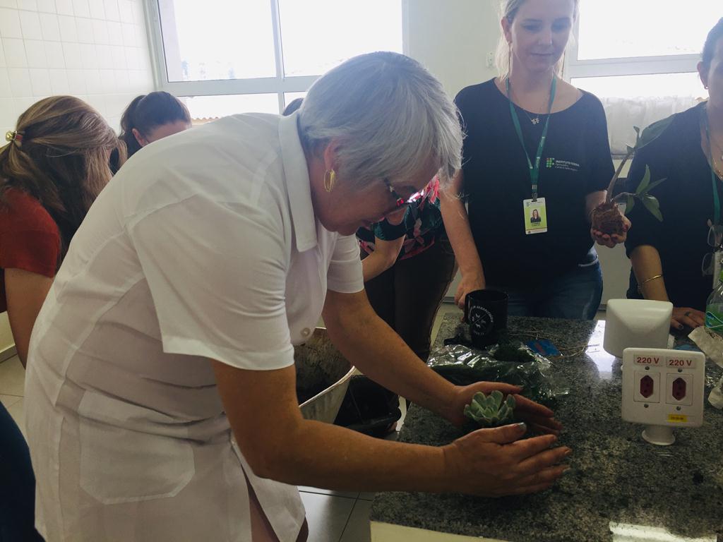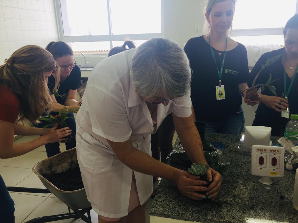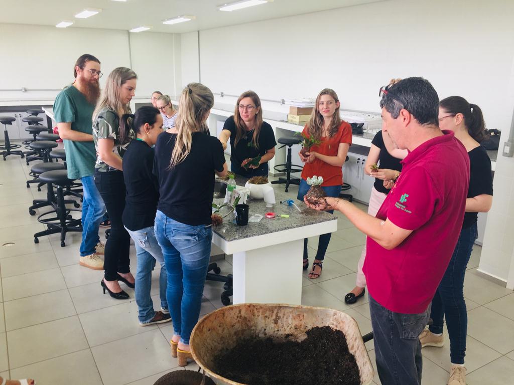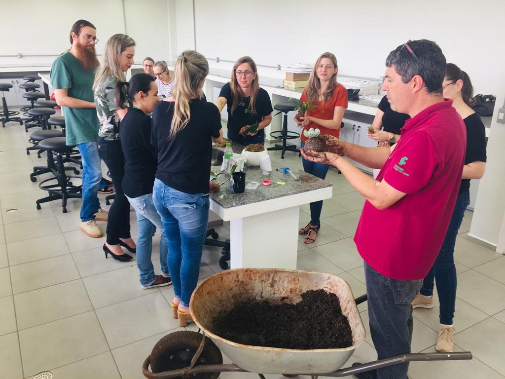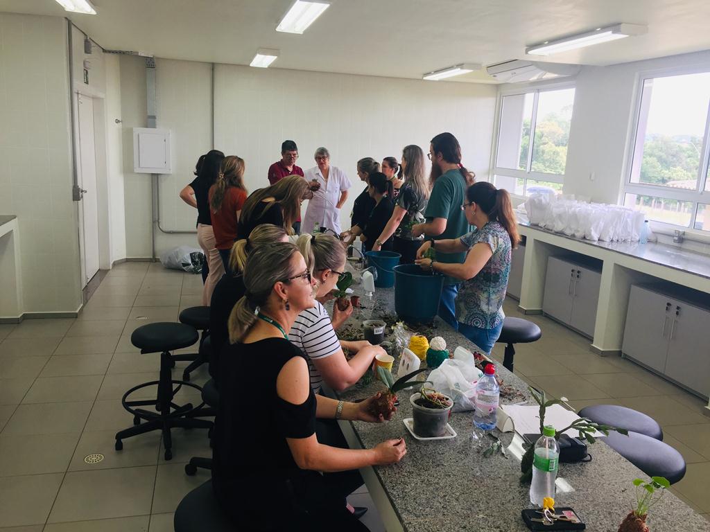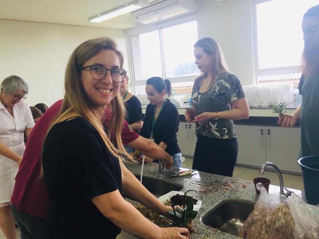 Encerrando as atividades da Quinzena, no dia 30 de outubro, das 13h15 às 14h45, aconteceu a oficina de Kokedamas, ministrada pelo professor Tarcísio Samborski, onde foram produzidos arranjos com plantas de diferentes espécies. Após a oficina, os servidores participaram da reunião geral e ao final foram convidados para uma pequena confraternização pela passagem do Dia do Servidor.