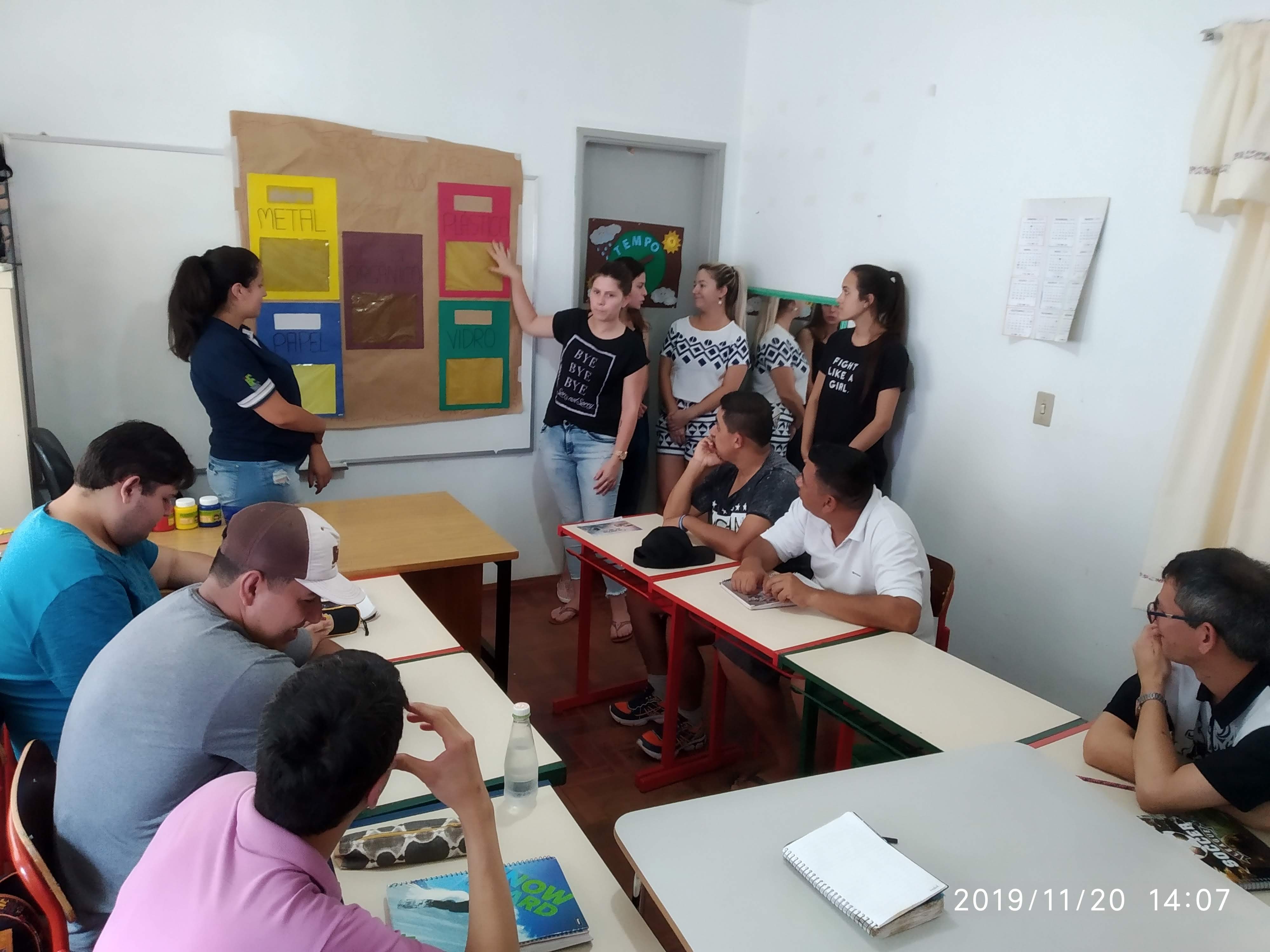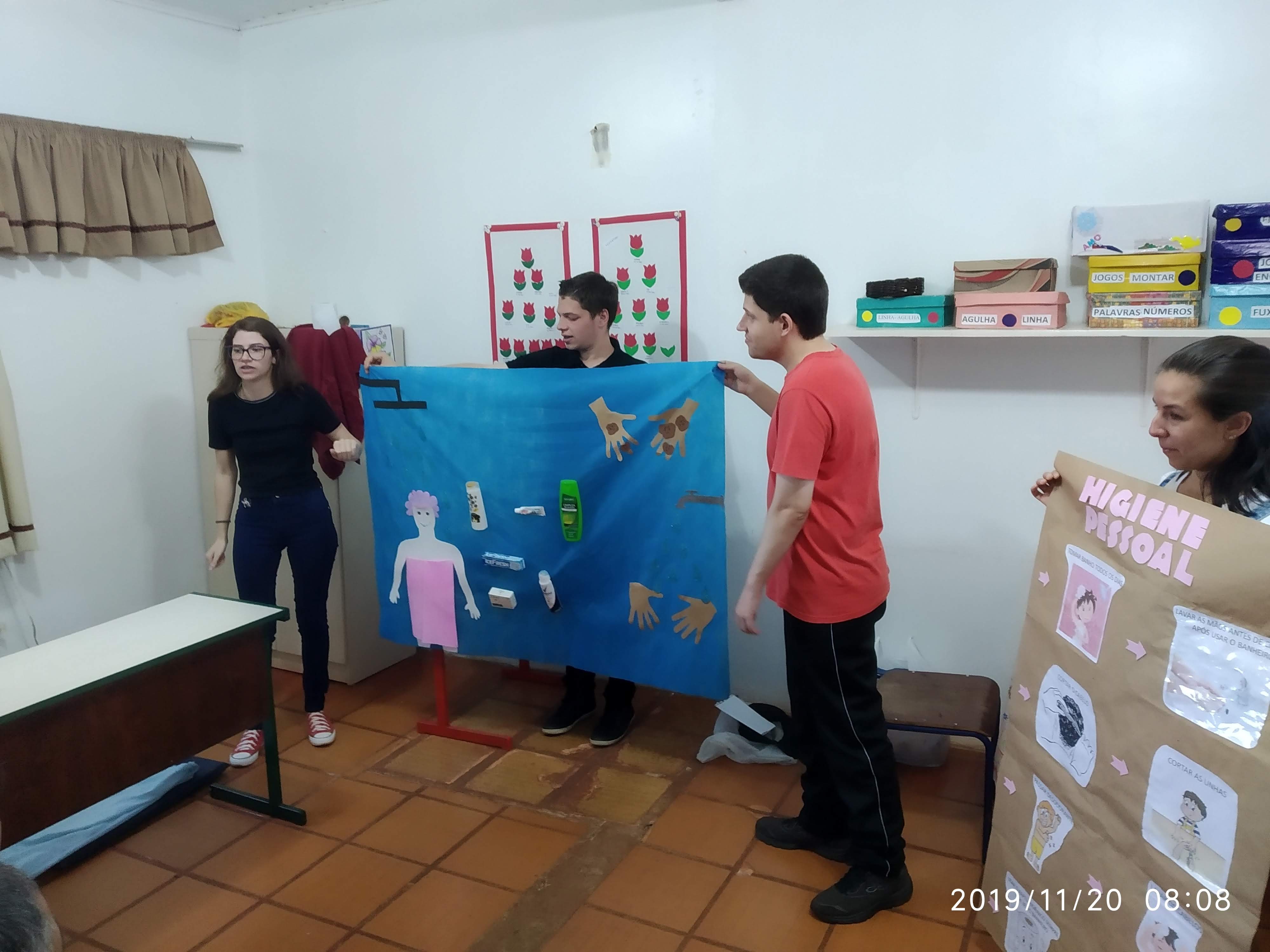 Neste ano a turma do 6º semestre da Licenciatura em Ciências Biológicas foi divida em três grupos, a partir de temáticas consideradas frágeis e apontadas pela APAE com potencialidade para serem trabalhadas pelos licenciandos. As temáticas estabelecidas foram: saúde bucal, higiene e cuidados com o corpo e cuidados com o meio ambiente.