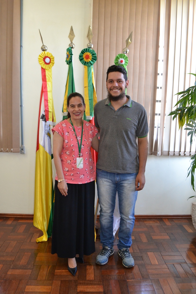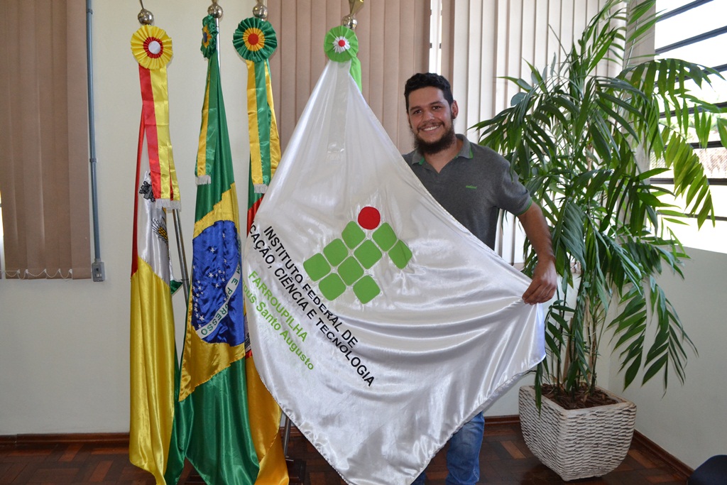O estudante da 1ª turma do curso superior de Licenciatura em Ciências Biológicas do IFFar – Campus Santo Augusto, Leonardo Bahry Escobar, colou grau em gabinete na tarde de ontem.