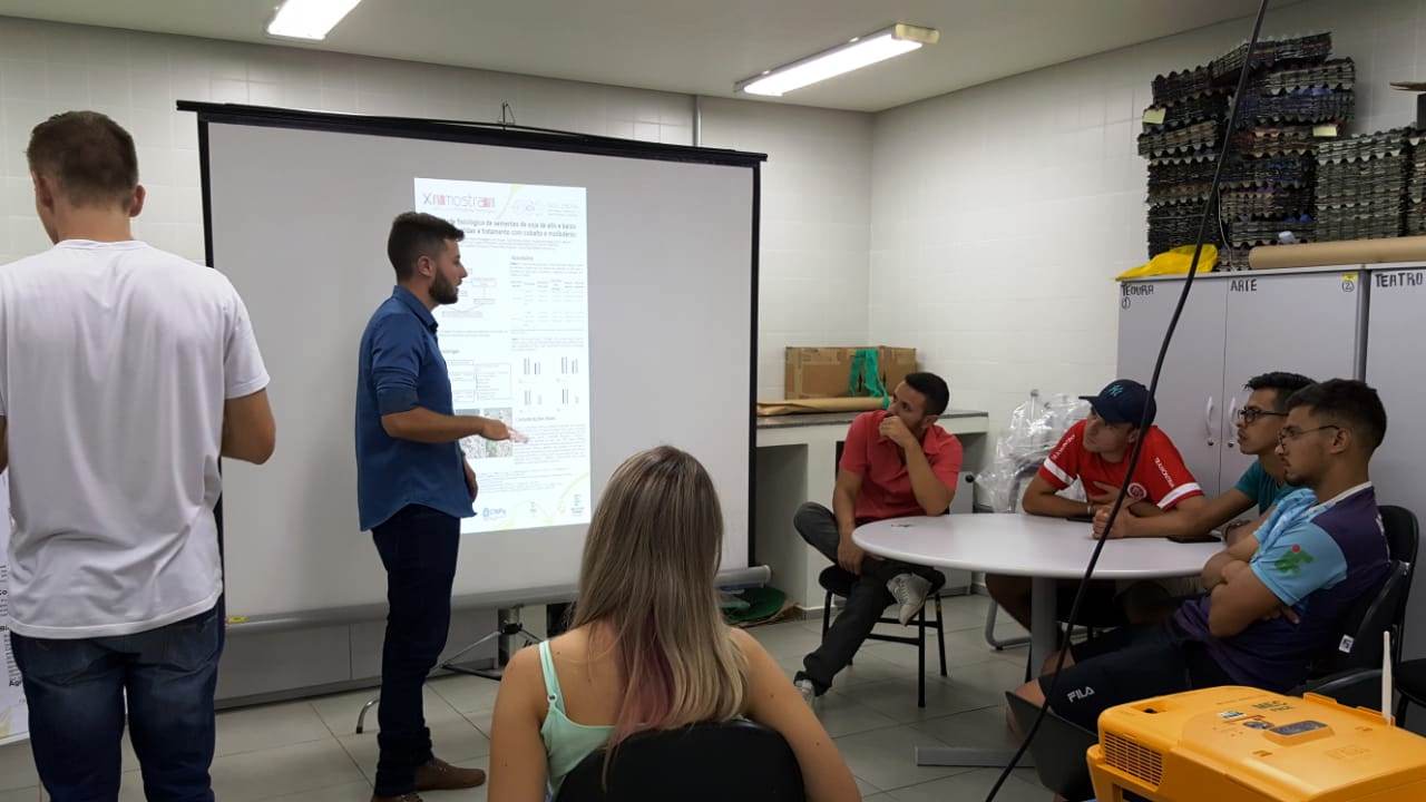 O evento teve continuidade durante a noite, onde os estudantes bolsistas apresentaram na forma de pôster, os trabalhos inscritos em eventos ligados aos projetos, durante os anos de 2018 e 2019, para estudantes do curso de Bacharelado em Agronomia.