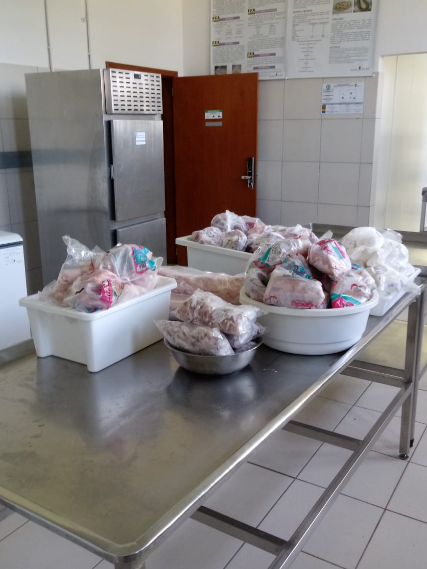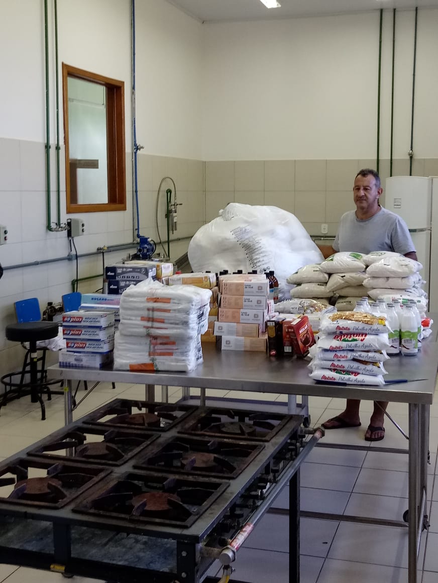 Na ocasião, foram doados para a SEHAS os seguintes itens: 19 pacotes de açúcar (5kg cada); 07 pacotes de açúcar refinado (1kg cada); 16 frascos de leite de coco (500 ml cada); 02 pacotes de amido de milho (1kg cada); 07 pacotes de polvilho (1kg cada); 03 achocolatados (200 gr); 03 pacotes de bombom (1kg cada); 12,925 kg de peito de frango; 17,385 kg de lombo suíno; 16,625 kg de carne bovina (agulha/ponta de peito); 10,160kg de carne bovina (paleta); 9,140kg de toucinho; 4,555 kg de peixes; 13,350 kg de mandioca; 850 unidade de calças viradas; 11 unidades de maçãs; 13 litros de iogurte.