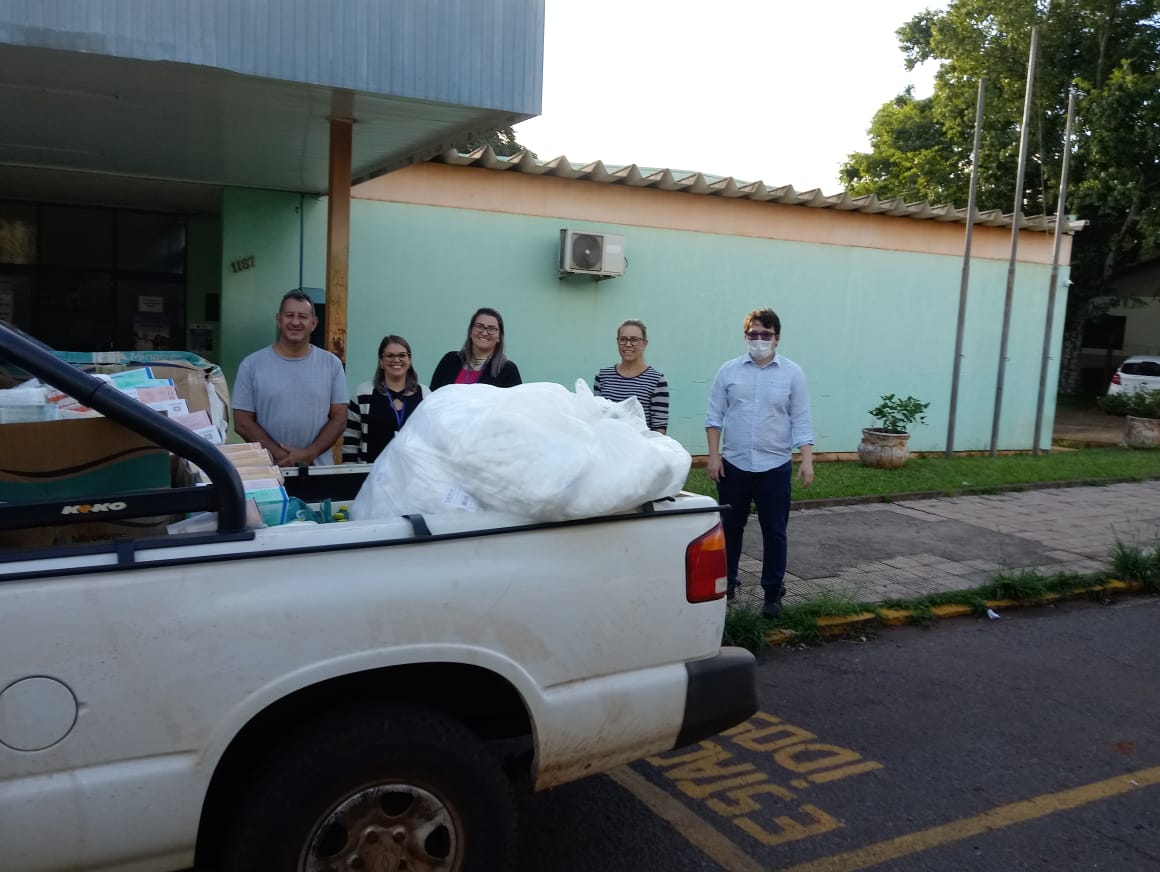 Para a SMS foram doados os seguintes itens: 06 bobinas de sacos plásticos para esterilização; 78 pacotes de compressas de gaze hidrófila; 39 litros de álcool 96%; 16 pares de luvas nitrílicas; 15 caixas de luvas de vinil; 25 caixas de luvas de látex; 05 caixas de luvas nitrílicas; 20 pacotes de sacos de lixo hospitalar (capacidade 15 litros); 09 caixas de máscaras descartáveis; 50 pacotes de toucas descartáveis (100 unidades cada); 03 litros de álcool 70%; 10 unidades de detergente de louça (05 litros cada); 10 unidades de desinfetante uso geral (02 litros cada).