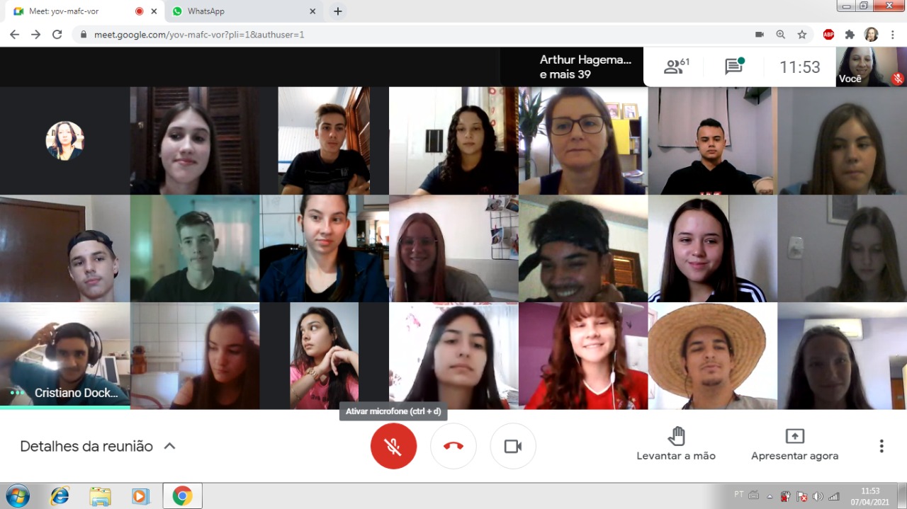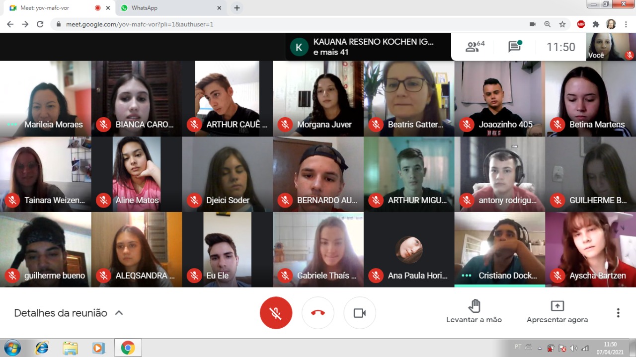 Na terça-feira, dia 06, os estudantes dos Cursos Técnicos tiveram pela manhã um momento de integração entre as turmas, também os ingressantes participaram de um momento com a Coordenação de Assistência Estudantil – CAE para falar sobre os auxílios estudantis, já os estudantes dos cursos superiores e PROEJA assistiram a live “Pandemia no Momento Atual”, ministrada pelo médico Rudinei Rozin e pela dentista Débora Speroni, seguida pela apresentação da Biblioteca.