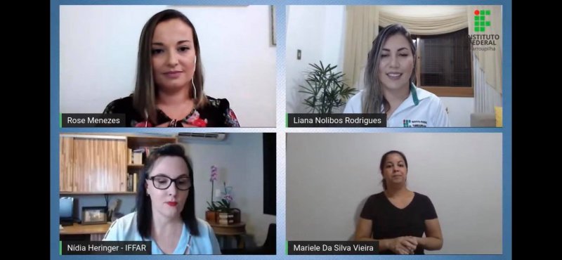 No dia 07 de abril, às 19h, a Reitora do IFFar, Nídia Heringer, participou da abertura do evento. A Reitora salientou a importância da saúde mental diante dos desafios da retomada do ano letivo e das necessárias adaptações após um ano de pandemia.  “Acreditamos que possamos nos reencontrar, conhecer novos integrantes da comunidade do IFFar e seguirmos juntos por meio de conexões diversas, preservando vidas e colaborando com a saúde de todos”, afirmou Nídia. A Reitora mencionou ainda a importância do esforço coletivo e individual para que possamos seguir em frente nessa caminhada virtual até que, com segurança e com vacina, seja possível retomar as atividades presenciais.