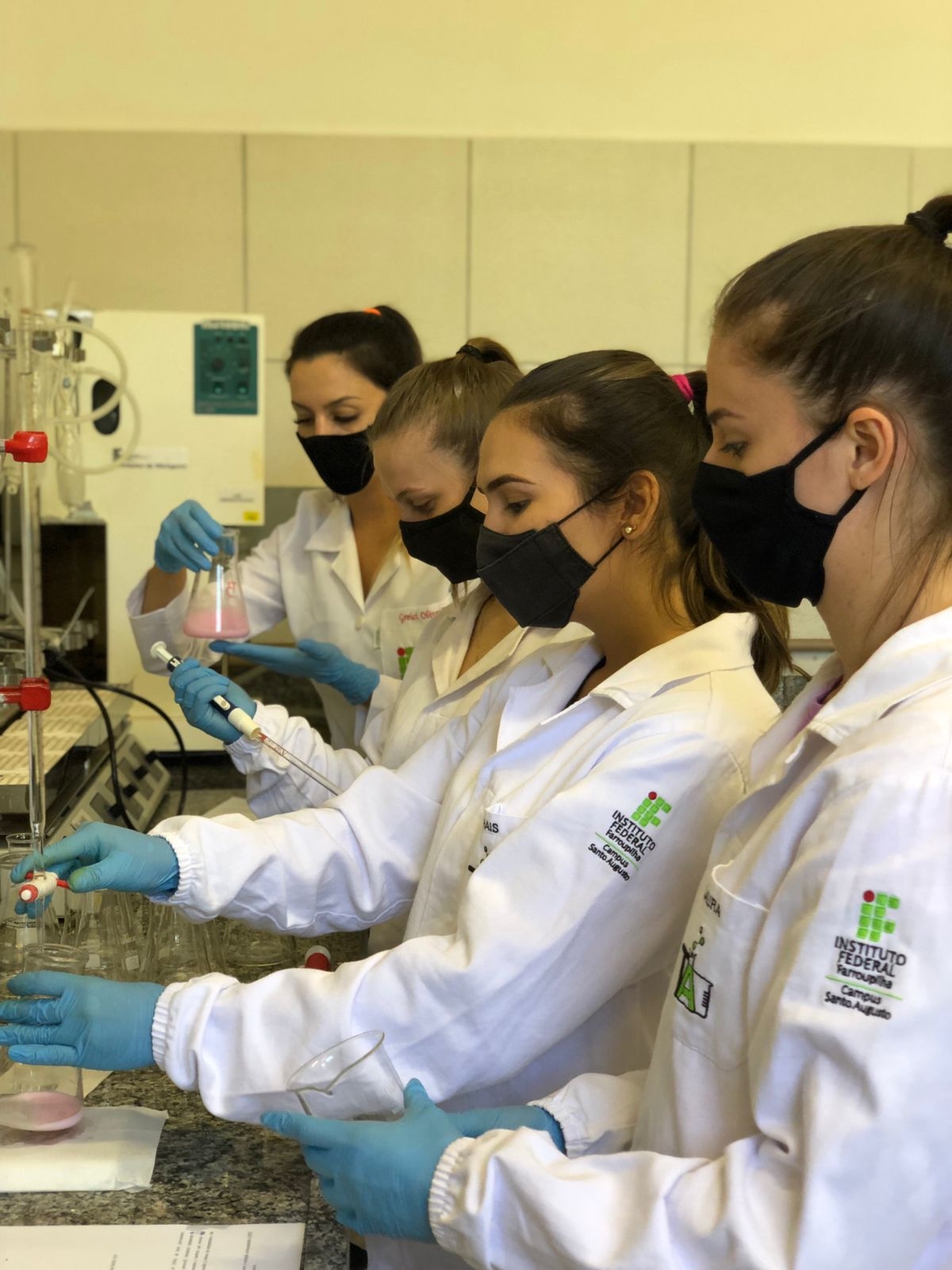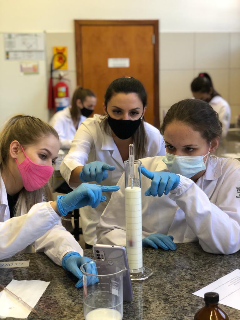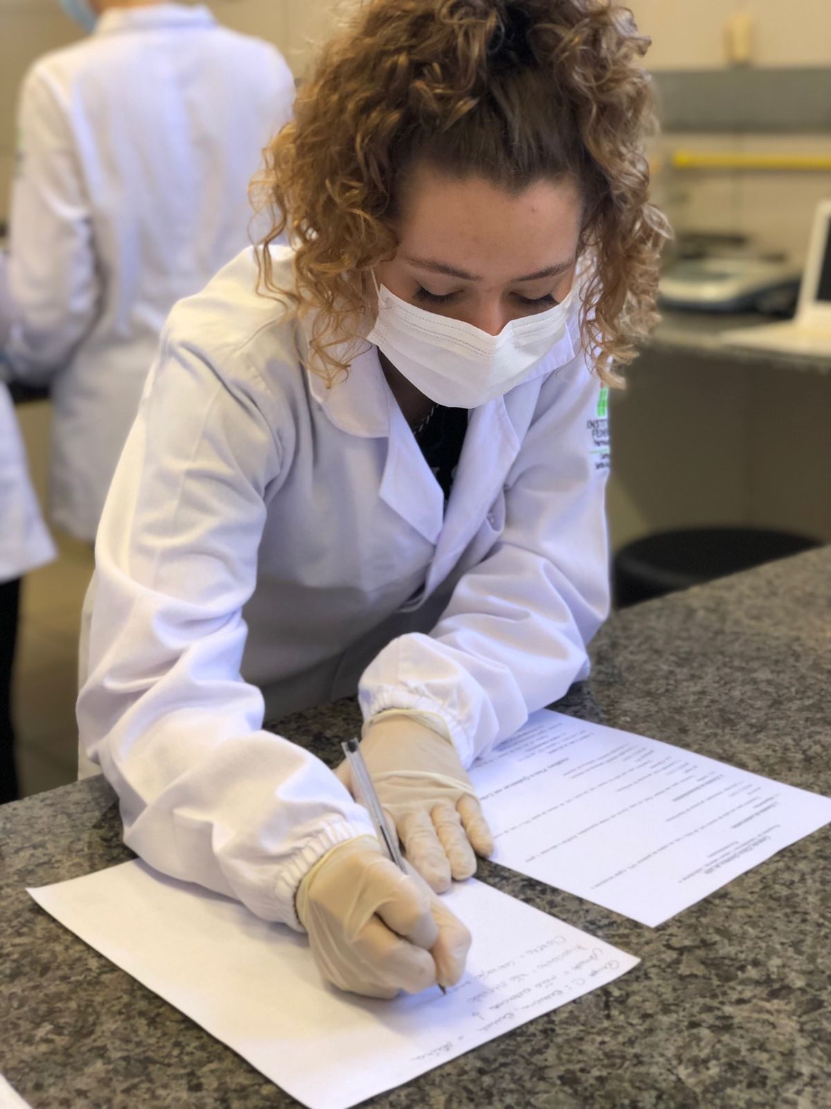 Após quase 2 anos de pandemia e com aulas remotas, uma parte dos estudantes do 3º ano do curso técnico em alimentos integrado ao ensino médio do IFFar -Campus Santo Augusto, participou na quarta-feira, 1º de dezembro, de uma atividade prática presencial nos laboratórios da instituição.