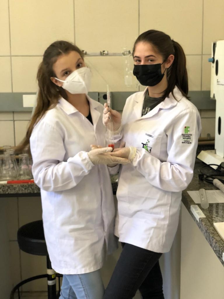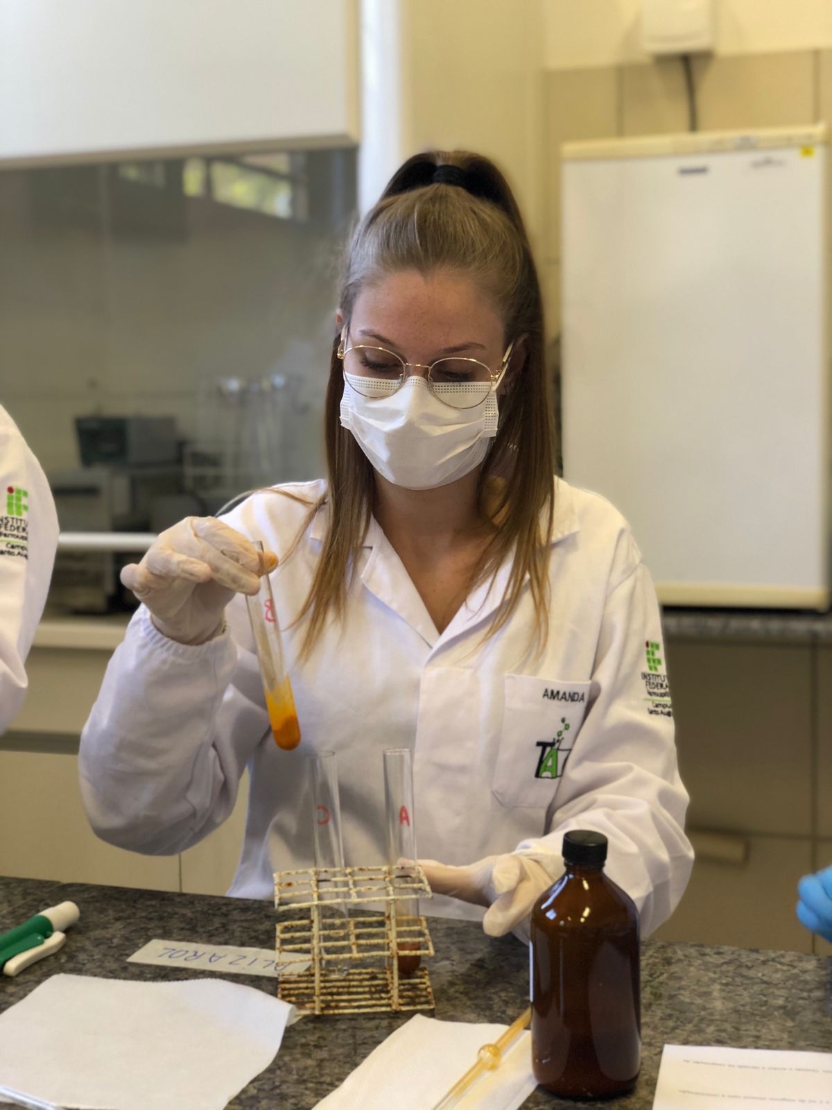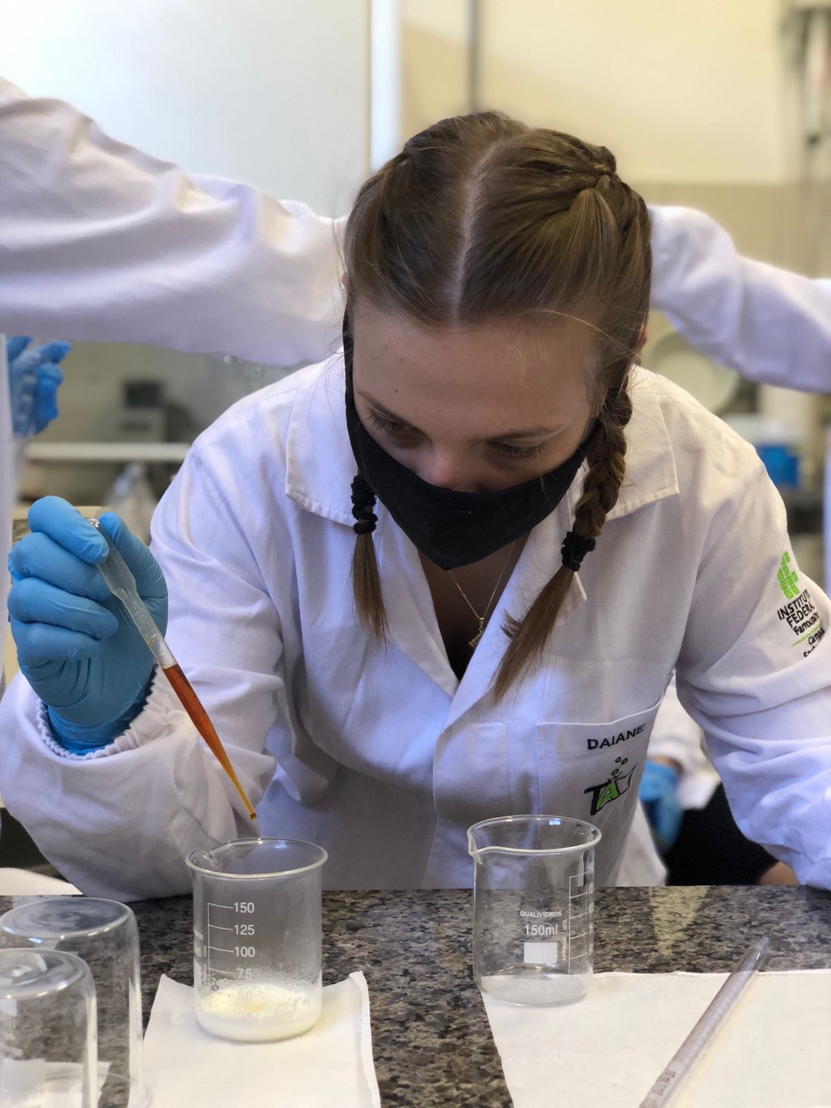 Após quase 2 anos de pandemia e com aulas remotas, uma parte dos estudantes do 3º ano do curso técnico em alimentos integrado ao ensino médio do IFFar -Campus Santo Augusto, participou na quarta-feira, 1º de dezembro, de uma atividade prática presencial nos laboratórios da instituição.