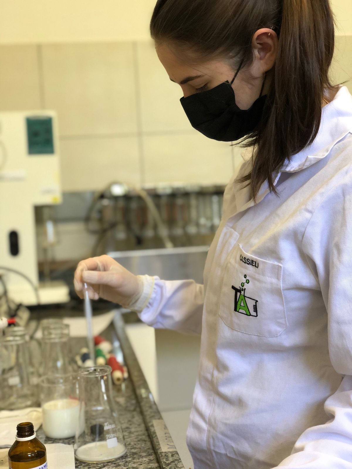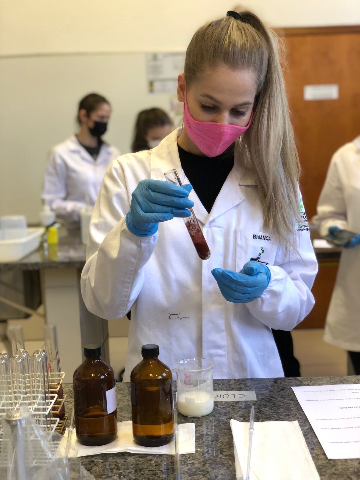 fisico - químico do leite, amplamente utilizadas em laticínios para detecção de possíveis fraudes. A aula prática faz parte da disciplina de Tecnologia de Leite e derivados, ministrada pela professora Greici Oliveira.