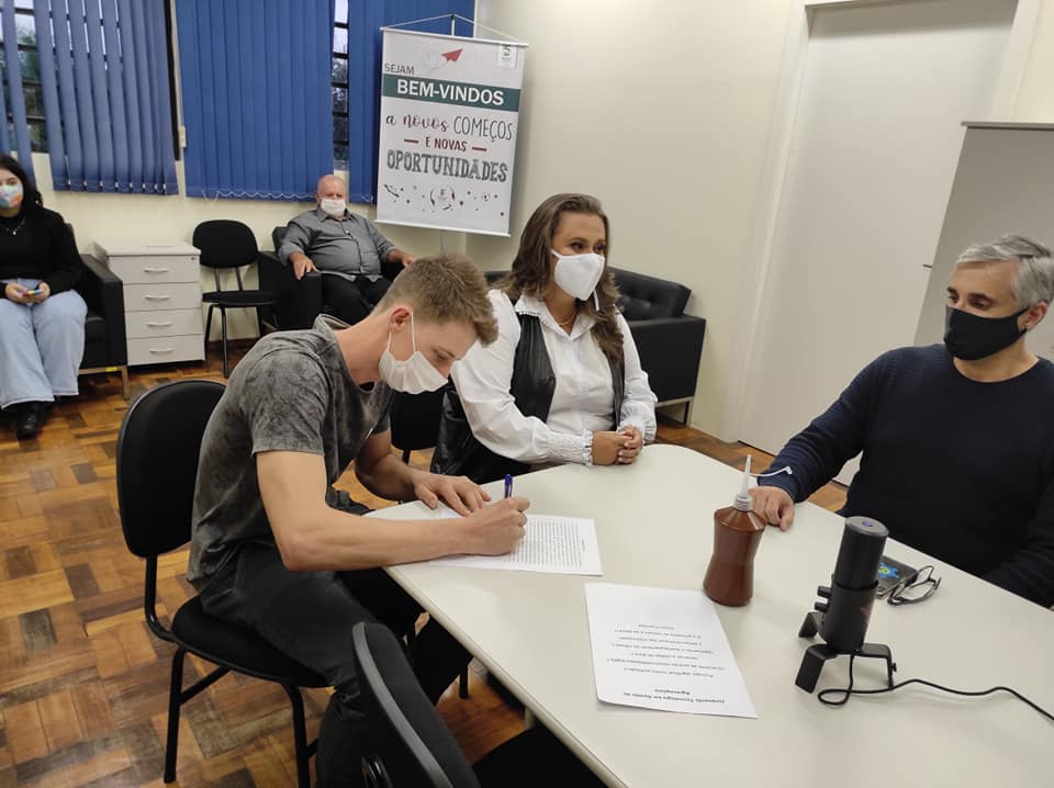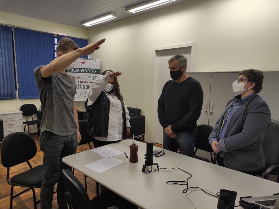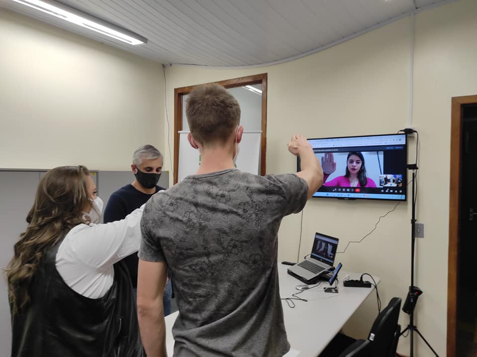 Franciny solicitou a formatura de gabinete por estar residindo em outro município, participando da solenidade por Webconferência. Marcoli e Rosimar foram aprovados em novos cursos superiores do IFFar e por isso precisaram solicitar o adiantamento da conclusão do curso.