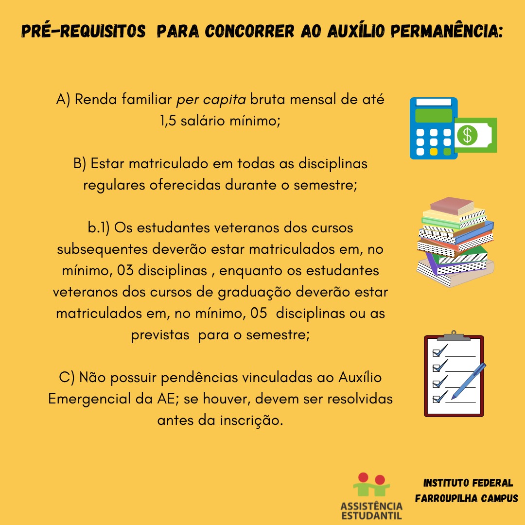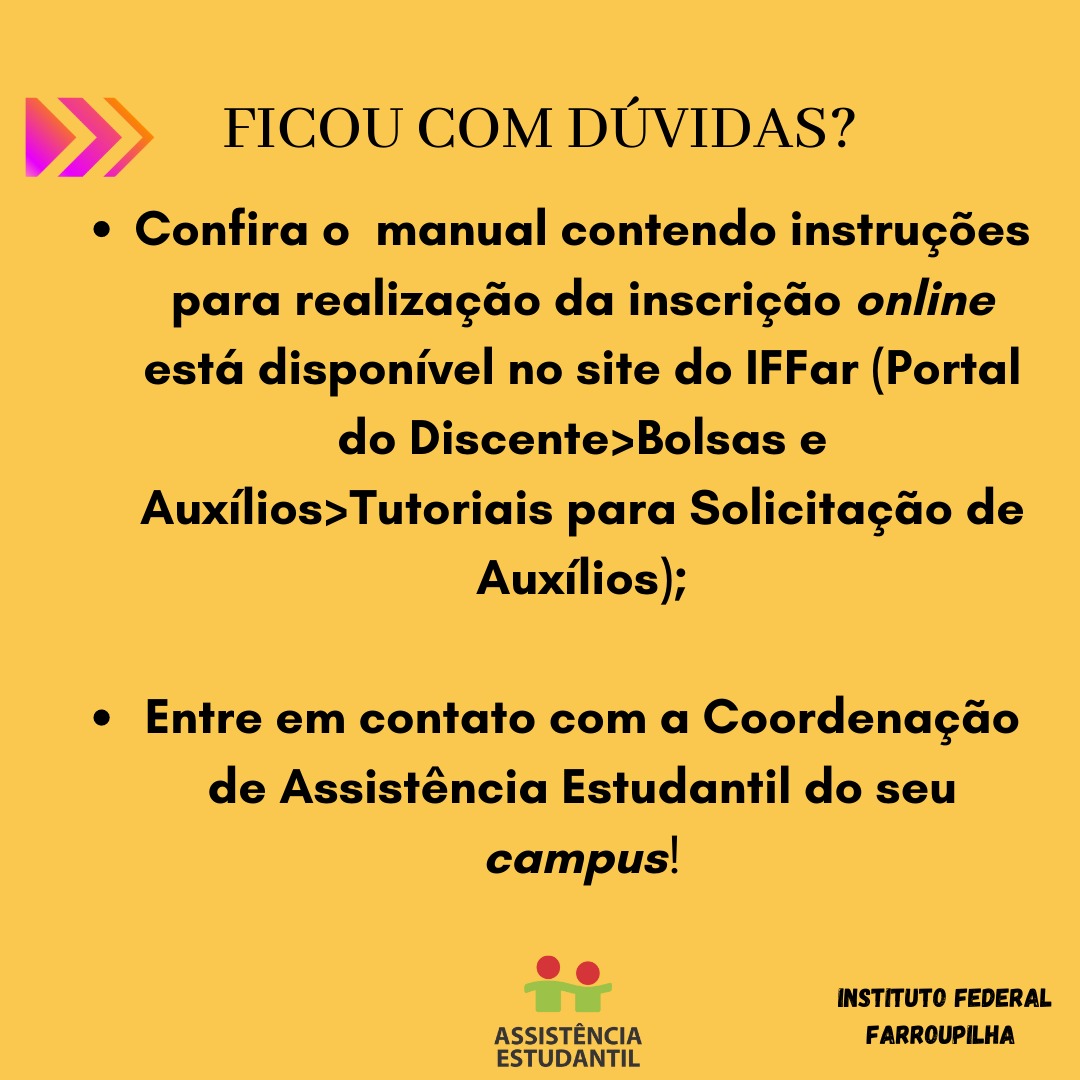 O IFFar está com inscrições abertas na Seleção de estudantes de Cursos Presenciais para a concessão de Auxílio Permanência da Assistência Estudantil do IFFar 2022/I- Complementar.