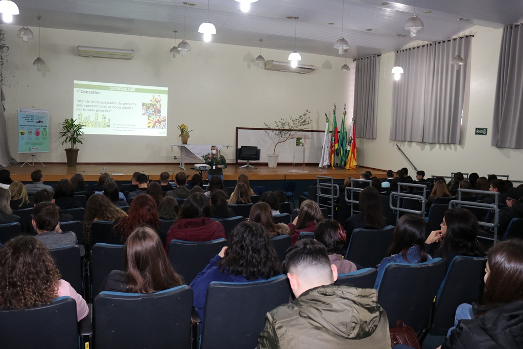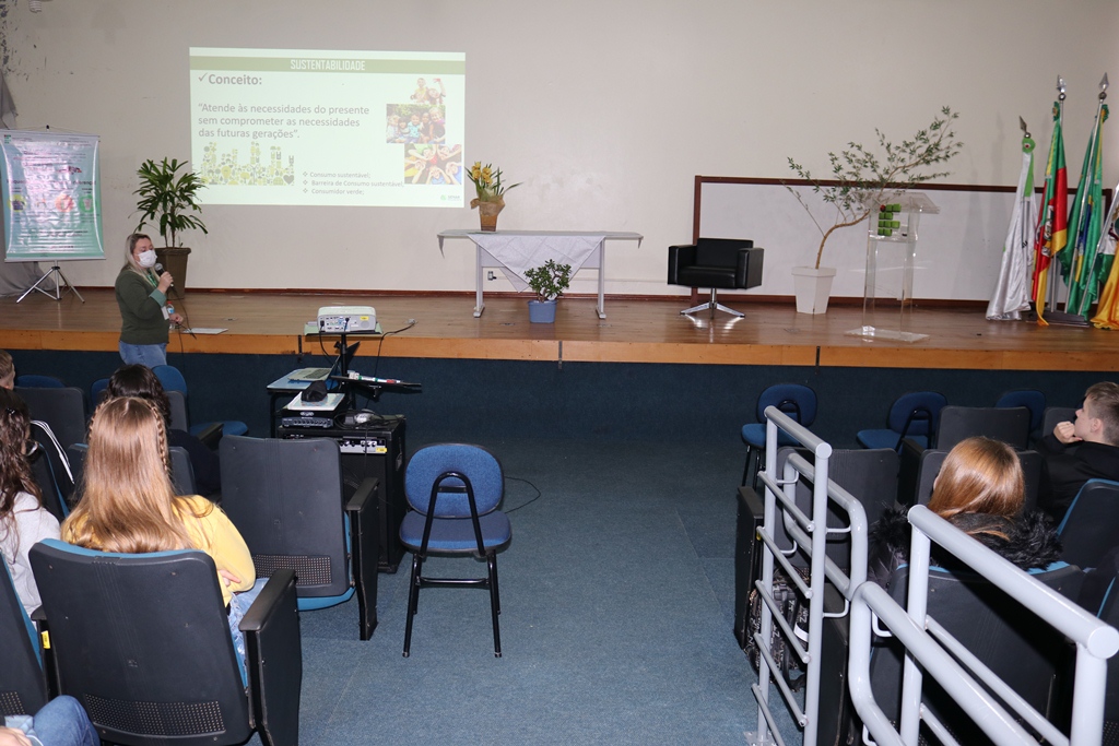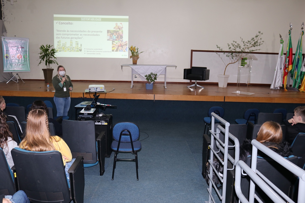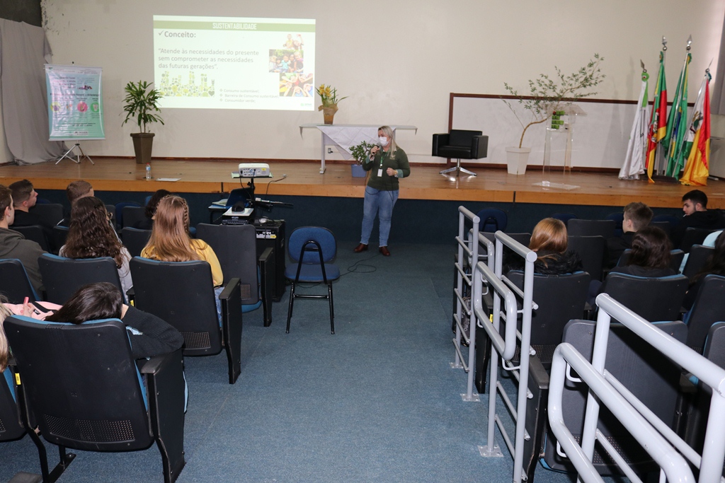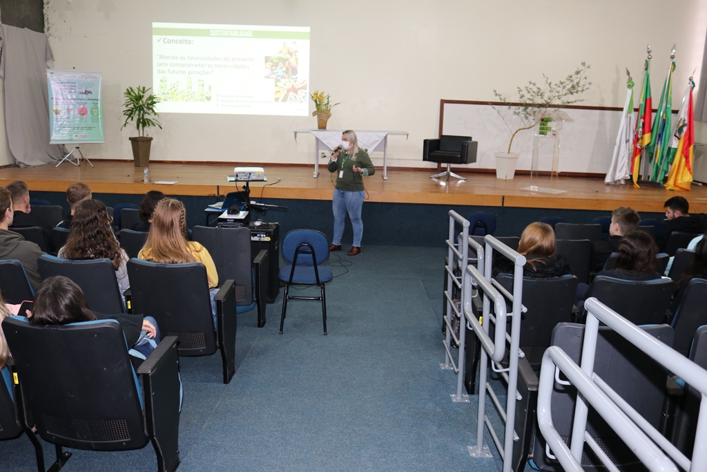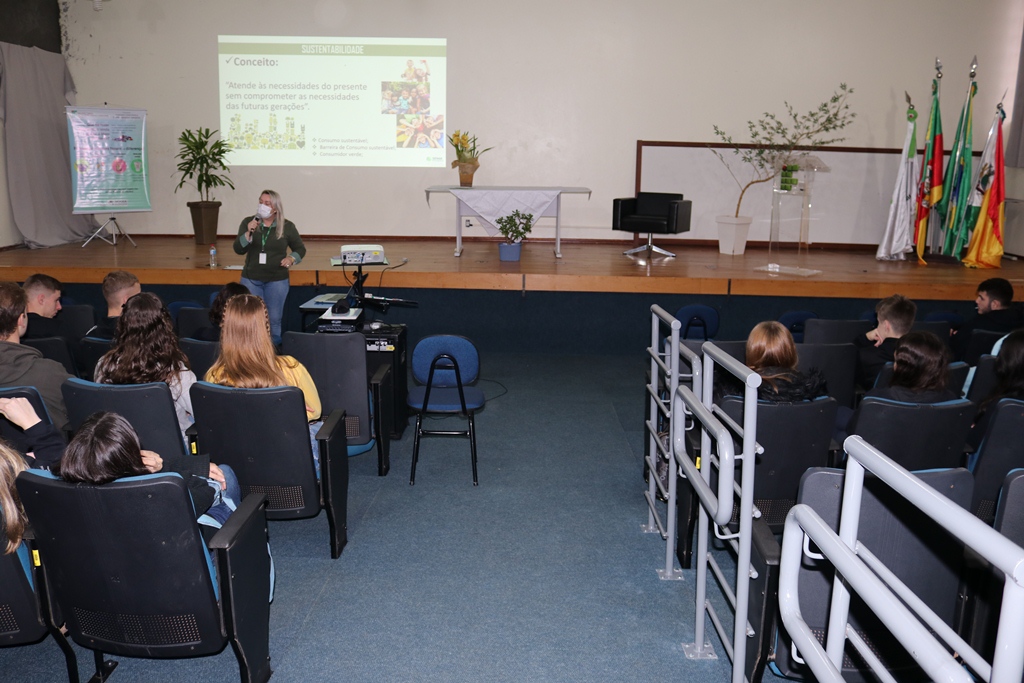 As atividades tiveram início na tarde desta segunda-feira, 06 de junho, às 15h30 no auditório da instituição, para os estudantes dos cursos técnicos integrados ao ensino médio, com a palestra “Produção e Consumo Sustentável”, ministrada pela Bióloga Marlidiane Klug (MBA em Perícia e Auditoria Ambiental e instrutora do Serviço Nacional de Aprendizagem Rural - Senar – RS).
