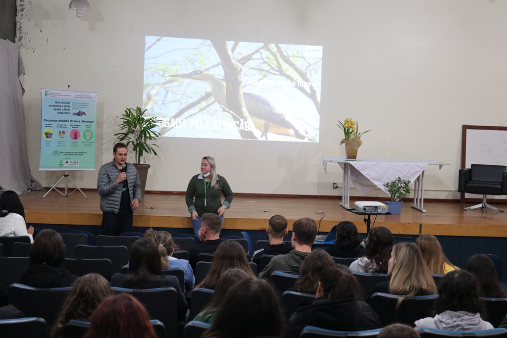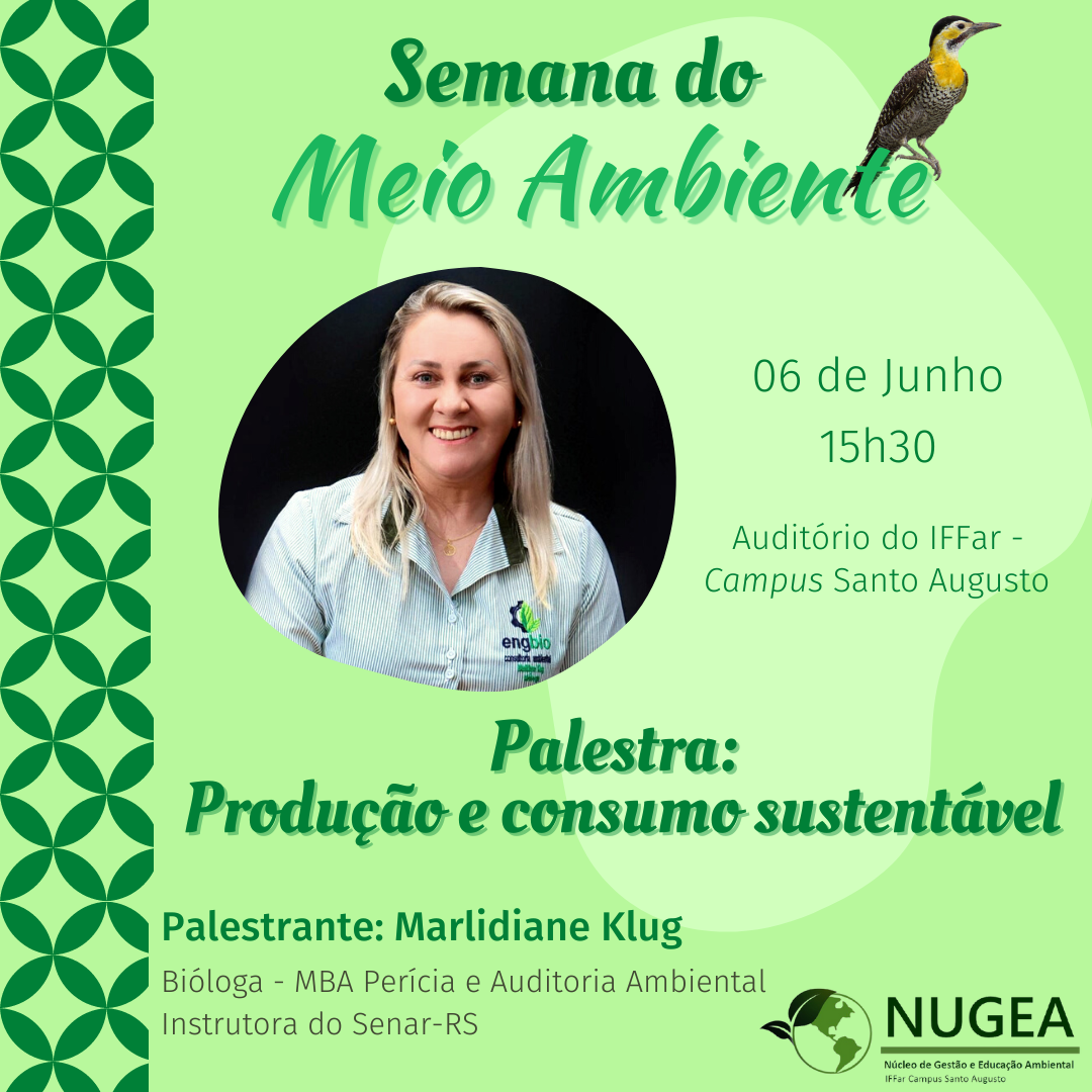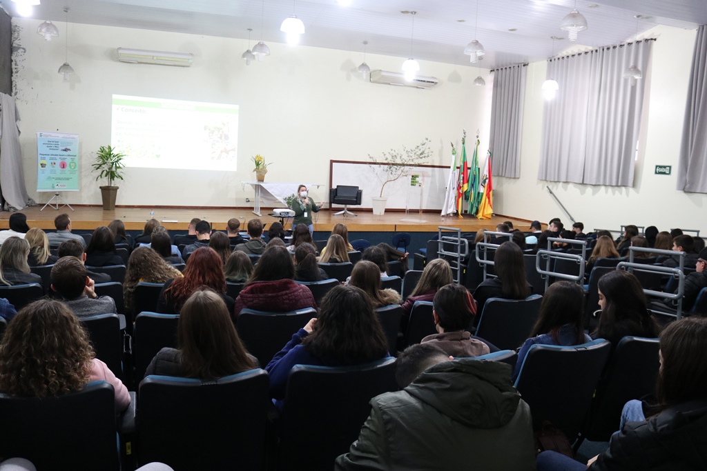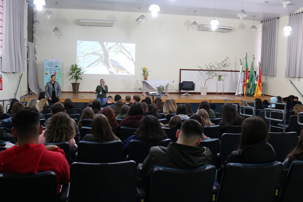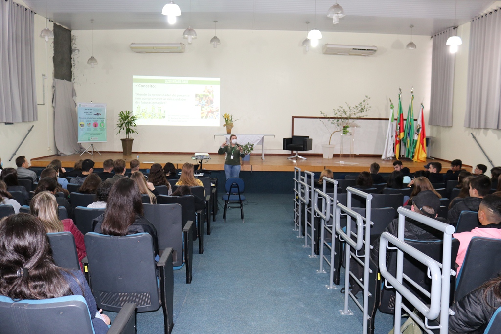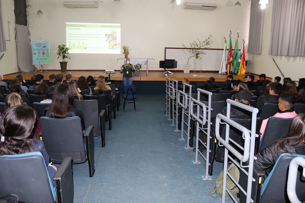 As atividades tiveram início na tarde desta segunda-feira, 06 de junho, às 15h30 no auditório da instituição, para os estudantes dos cursos técnicos integrados ao ensino médio, com a palestra “Produção e Consumo Sustentável”, ministrada pela Bióloga Marlidiane Klug (MBA em Perícia e Auditoria Ambiental e instrutora do Serviço Nacional de Aprendizagem Rural - Senar – RS).