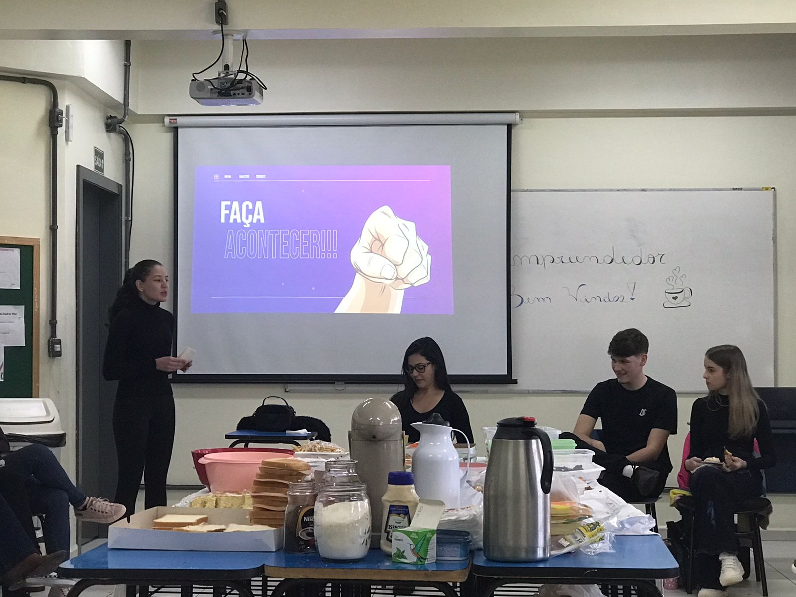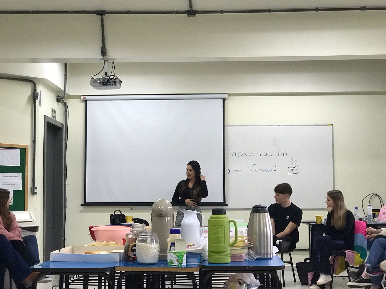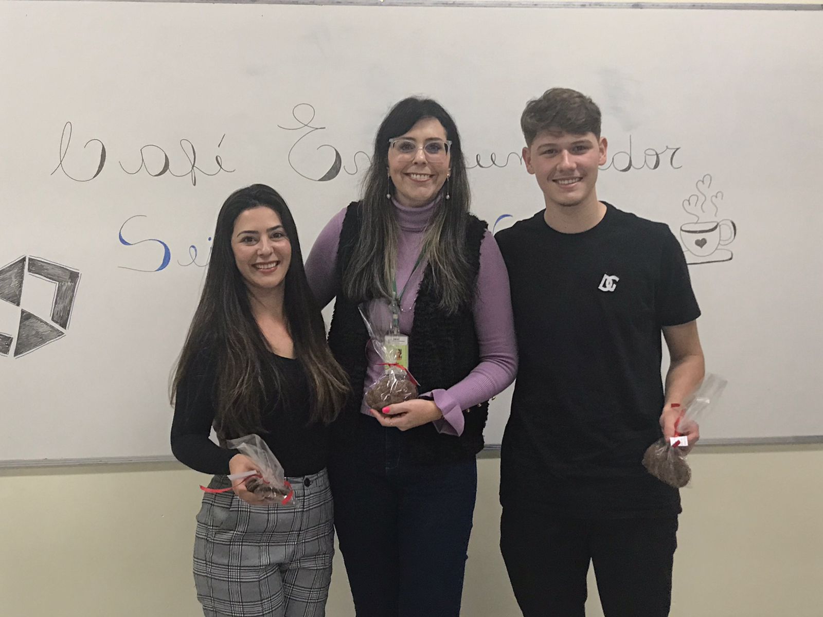 Os estudantes do 3º ano do curso técnico em Administração, promoveram no dia 07 de junho, o Café Empreendedor, dentro da disciplina de Empreendedorismo ministrada pela professora Simone Beatris Nunes. Os alunos tiveram o desafio de planejar o evento convidando palestrantes, fazendo a abertura, encerramento, organização do café e demais atividades.