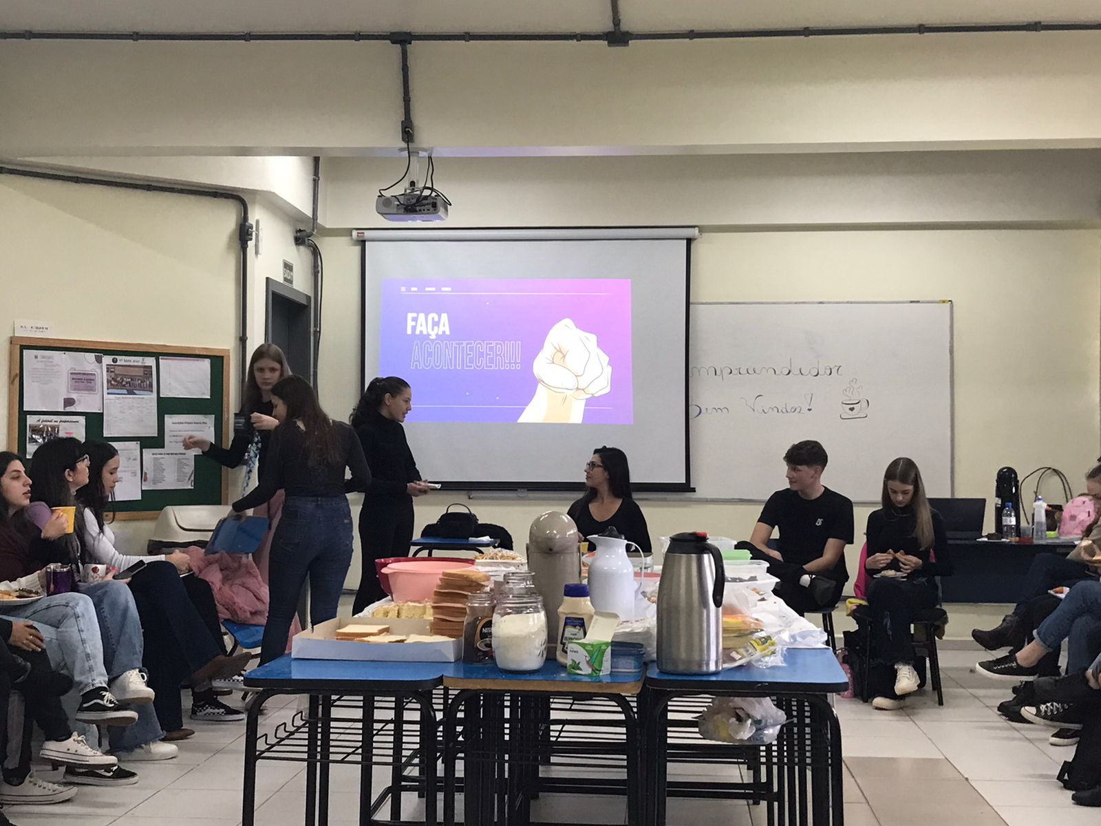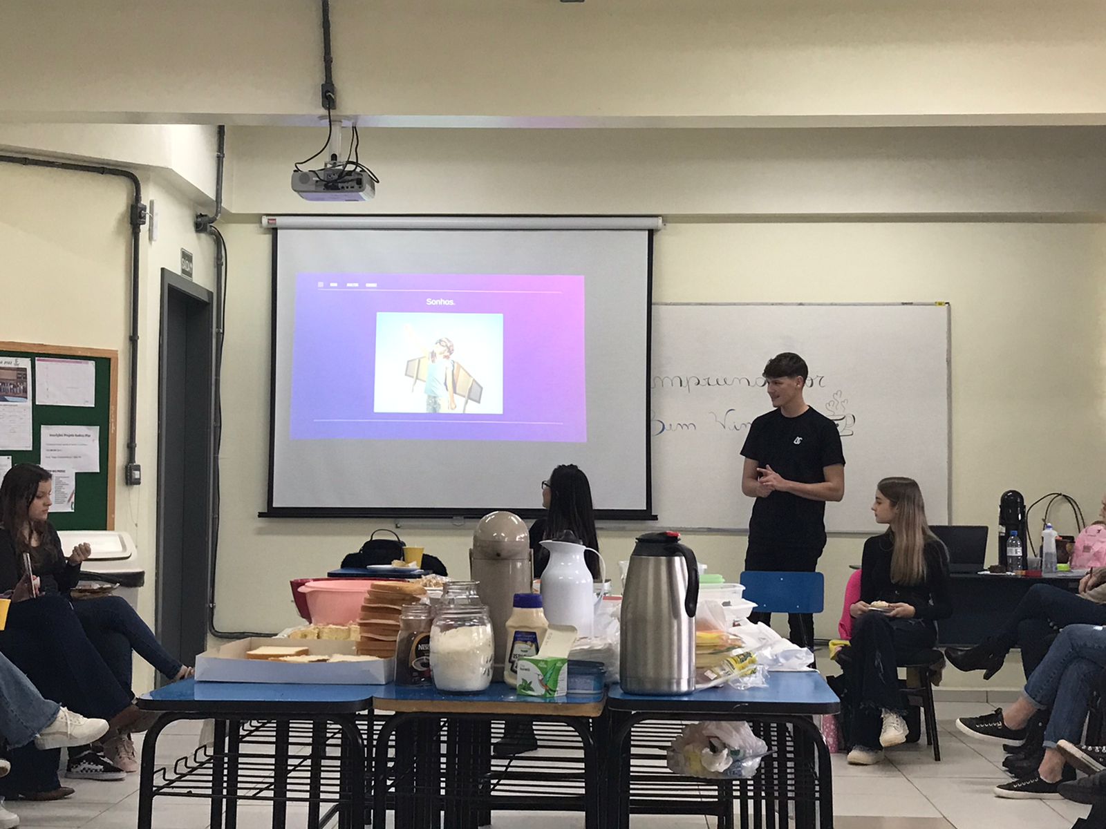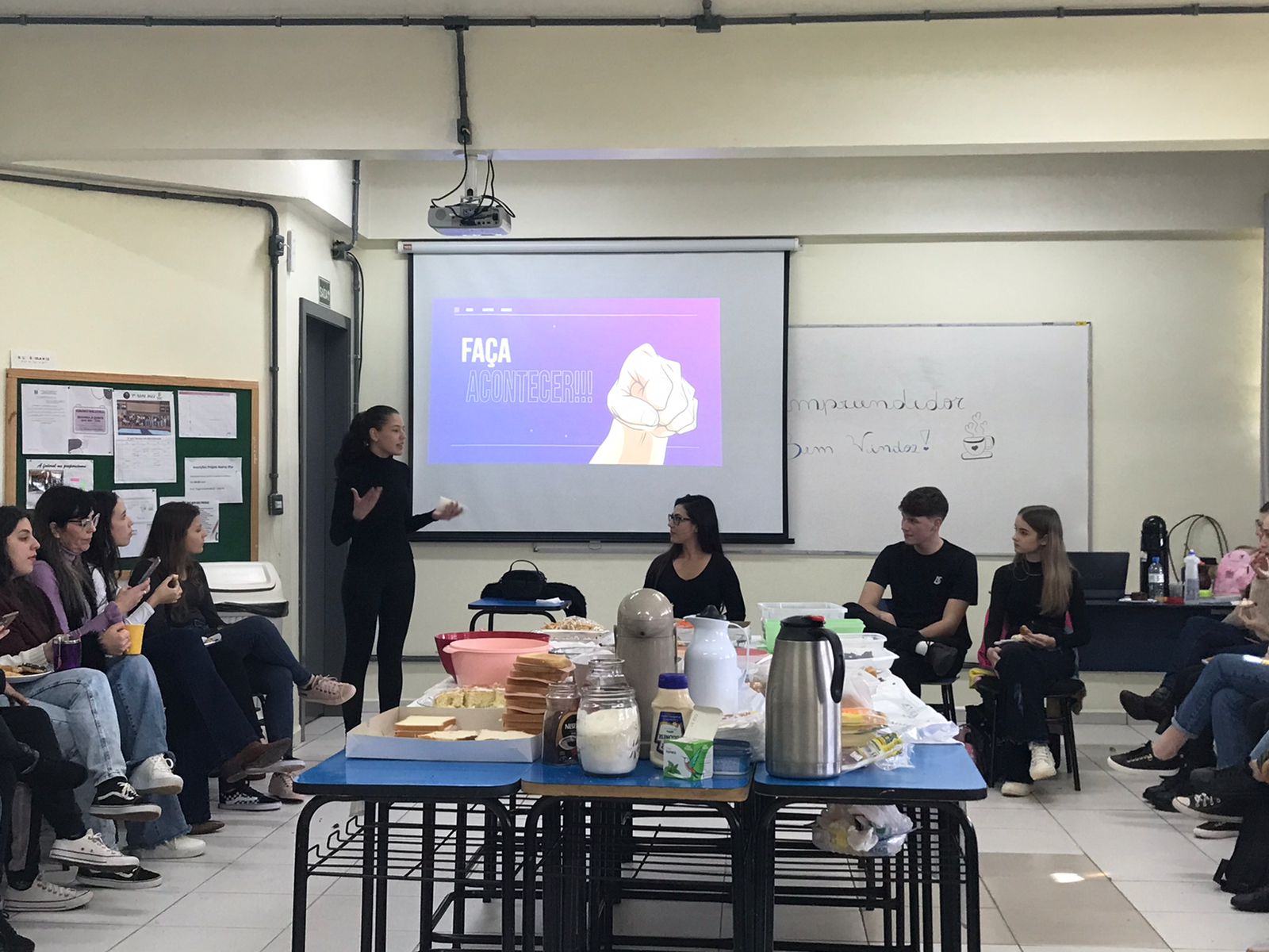 Os estudantes do 3º ano do curso técnico em Administração, promoveram no dia 07 de junho, o Café Empreendedor, dentro da disciplina de Empreendedorismo ministrada pela professora Simone Beatris Nunes. Os alunos tiveram o desafio de planejar o evento convidando palestrantes, fazendo a abertura, encerramento, organização do café e demais atividades.