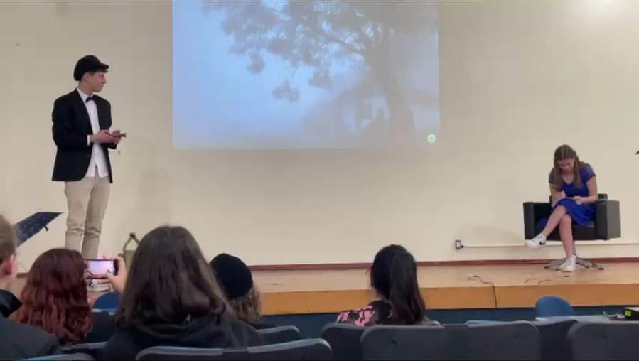 Para finalizar as atividades referentes aos poemas/poesias os professores ainda elaboram e realizaram um sarau literário que aconteceu no auditório do campus em dois momentos. No dia 23/06 a turma de alimentos e no dia 30/06 foi vez dos estudantes de administração. Essa atividade consistia na declamação de poemas. As turmas foram divididas em grupos ou trios e deveriam escolher um poema para realizar a apresentação. Além da declamação, cada grupo era responsável por criar figurinos e cenários de acordo o texto escolhido, para ilustrar a apresentação.