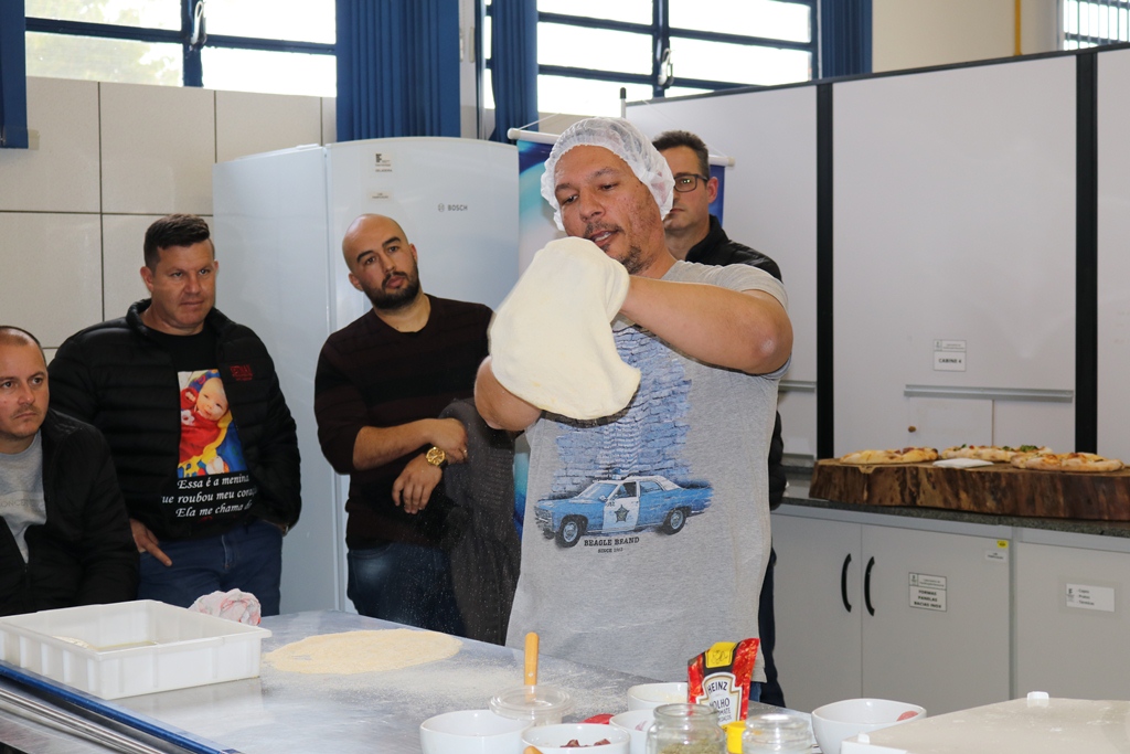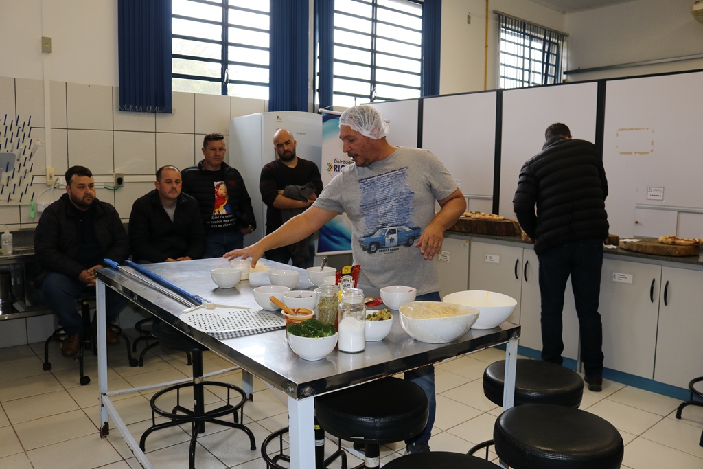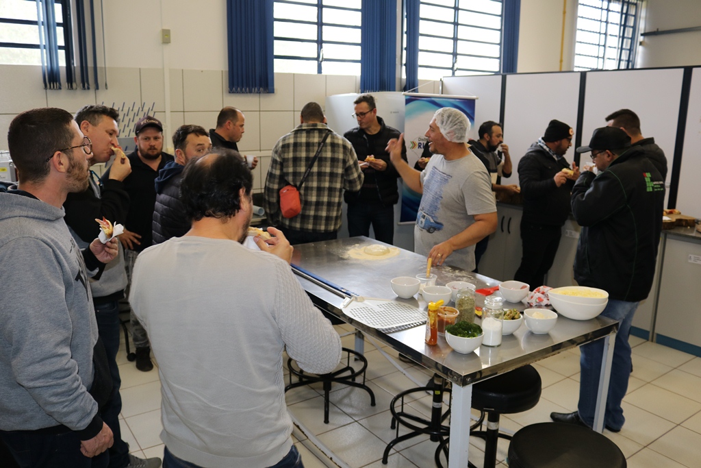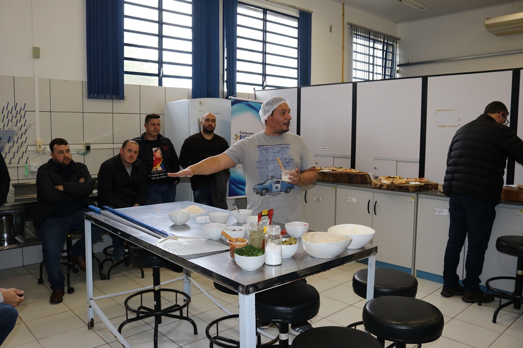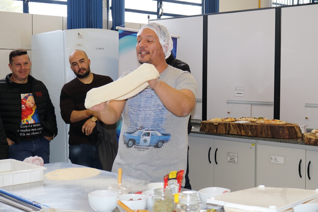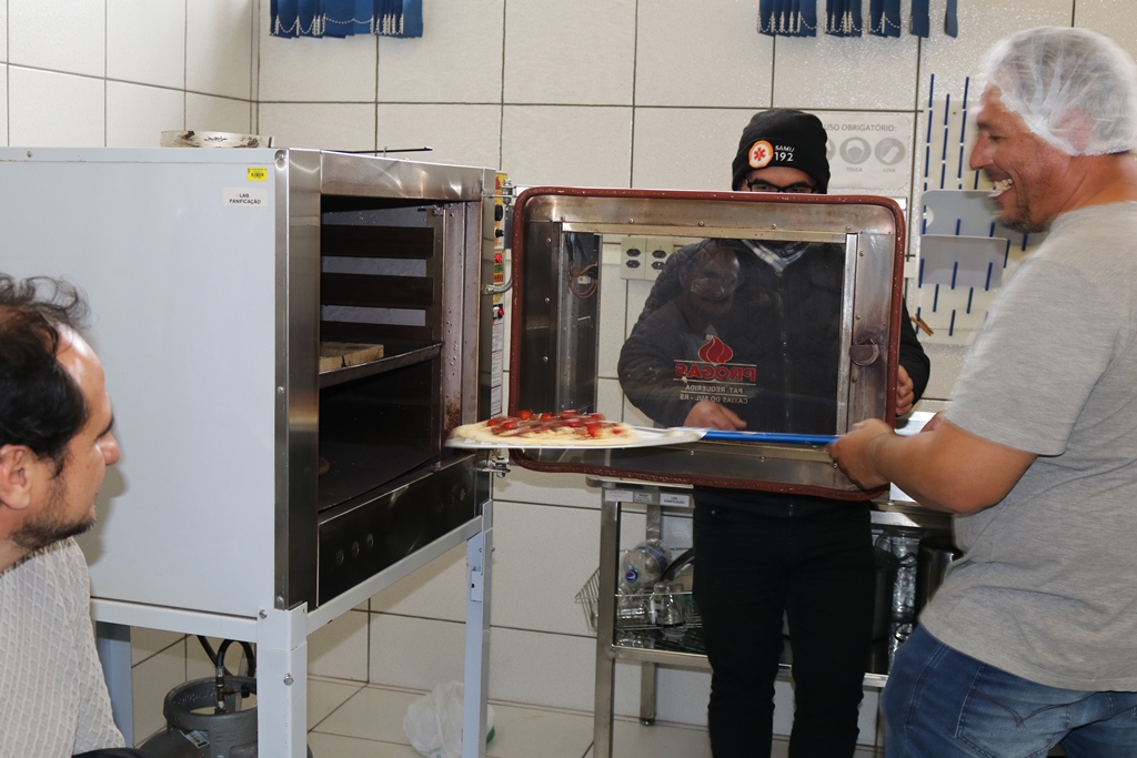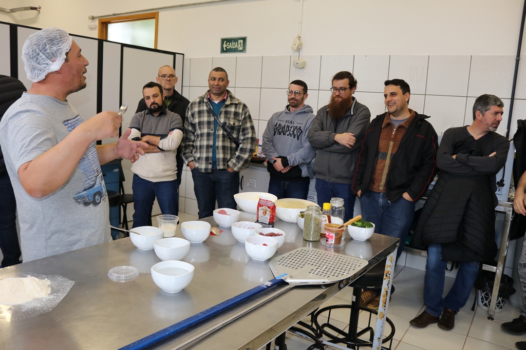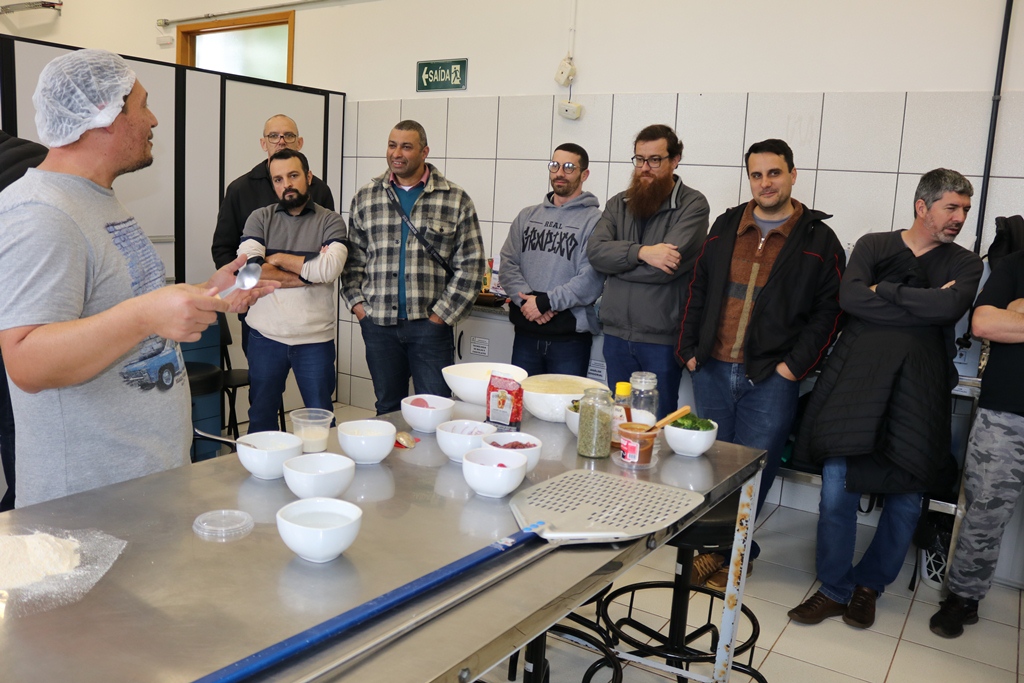 Na sequência, às 15h, os papais participaram de uma oficina de pizza no laboratório de panificação, ministrada pelo professor Raphael d’Acampora, que ensinou desde a produção da massa, a escolha dos recheios, o preparo e a forma de assar. Os produtos utilizados na oficina foram fornecidos pela empresa Distribuidora Riograndense.