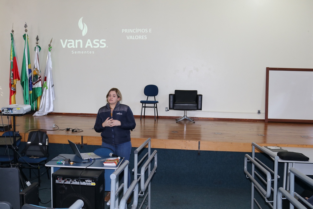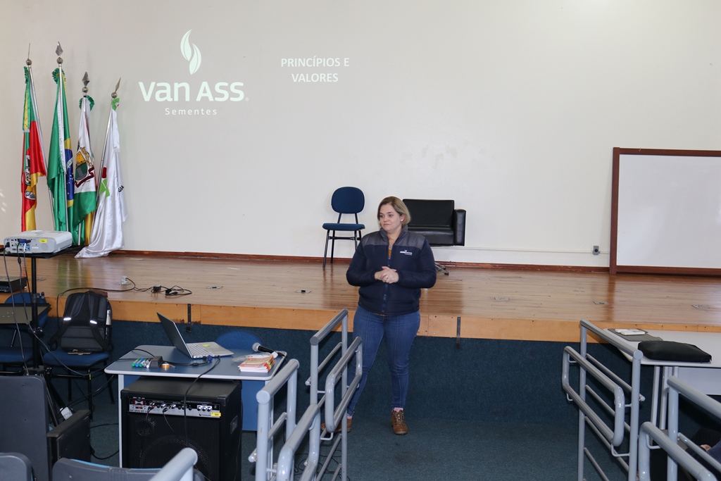 Na tarde de quinta-feira, 11 de agosto, os estudantes do 2º e 3º ano do curso técnico em Agropecuária integrado ao ensino médio do IFFar – Campus Santo Augusto assistiram uma palestra com a Coordenadora de Recursos Humanos da Sementes Vanass, Fabiane Trentini e com a Assistente de RH, Shaiana Harter, as quais vieram falar sobre a empresa e as oportunidades de estágio.