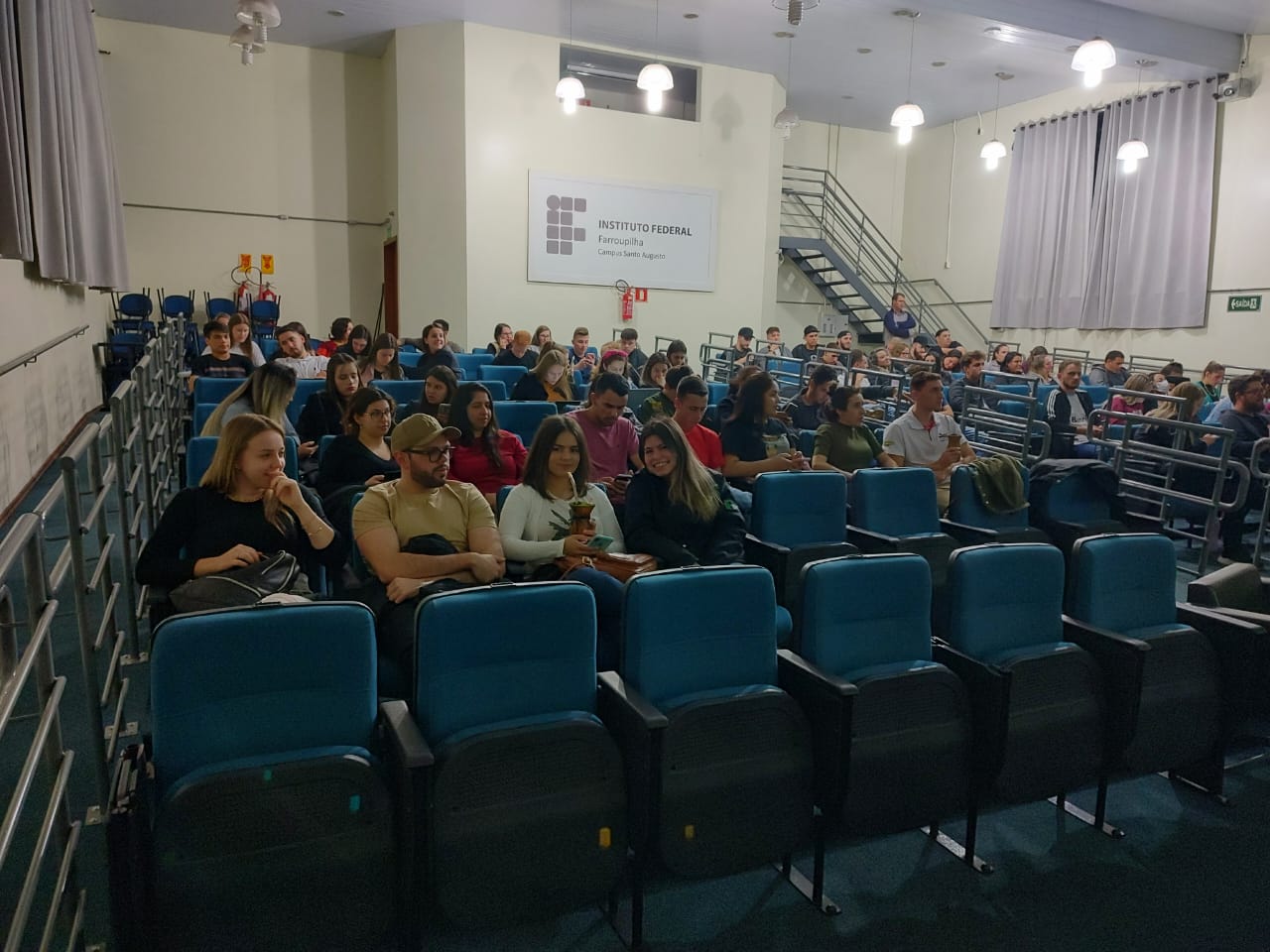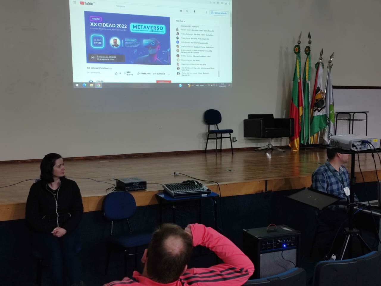 Os estudantes do Bacharelado em Administração do IFFar – Campus Santo Augusto participaram no dia 23 de agosto, no auditório da instituição, às 19h30, de palestra transmitida online do XX CIDEAD 2022 – Ciclo de Palestras de Administração com o tema Metaverso. O evento organizado pelo Conselho Regional de Administração do RS (CRA-RS) tem o IFFar como uma das instituições apoiadoras.