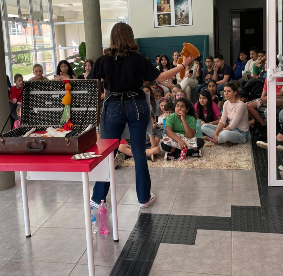 Nos dias 23 e 25 de agosto o projeto de extensão “Biblioteca em Ação: contar, encantar e educar” recebeu estudantes de 05 a 10 anos da Escola Municipal professora Lorette Fanck de Chiapetta. Na oportunidade, as crianças puderam conhecer o IFFar - Campus Santo Augusto, principalmente a Biblioteca Mario Quintana, assistir a famosa hora do conto organizada pelos integrantes do projeto e depois fazer um piquenique ao ar livre.