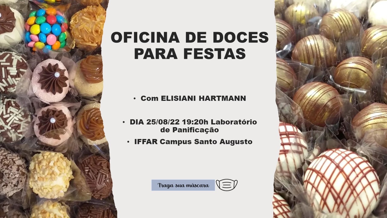 No dia 25, às 19h20, aconteceu a oficina de Doces de Festa, ministrada por Elisiane Hartmann e no dia 24, às 19h20 aconteceu à oficina de Massas Folhadas, ministrada por Adelar Moraes. Após as oficinas os estudantes puderam degustar as delícias produzidas.