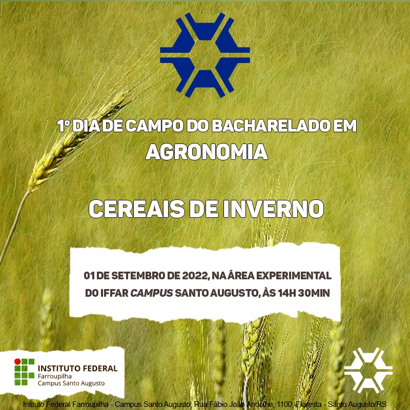 Foi realizado na tarde desta quinta-feira o 1º Dia de Campo do Bacharelado em Agronomia, com o tema “Cereais de Inverno”. O evento, organizado pelos estudantes do 8º semestre do curso, foi realizado na área experimental do IFFar – Campus Santo Augusto.