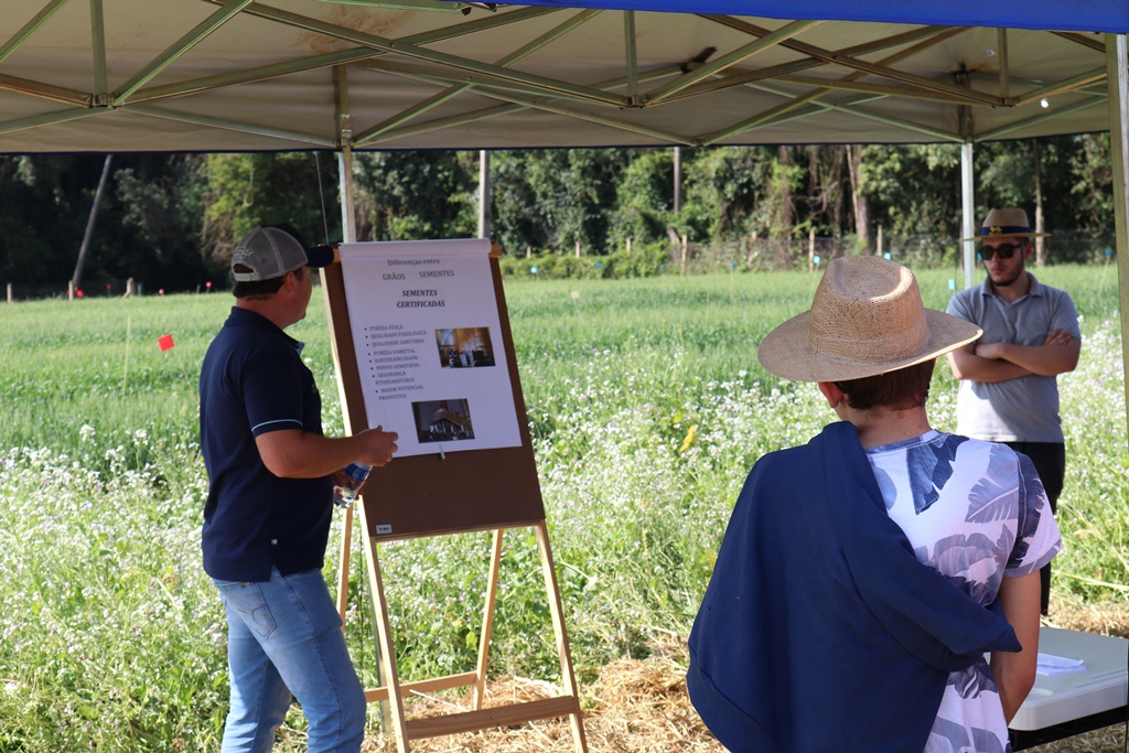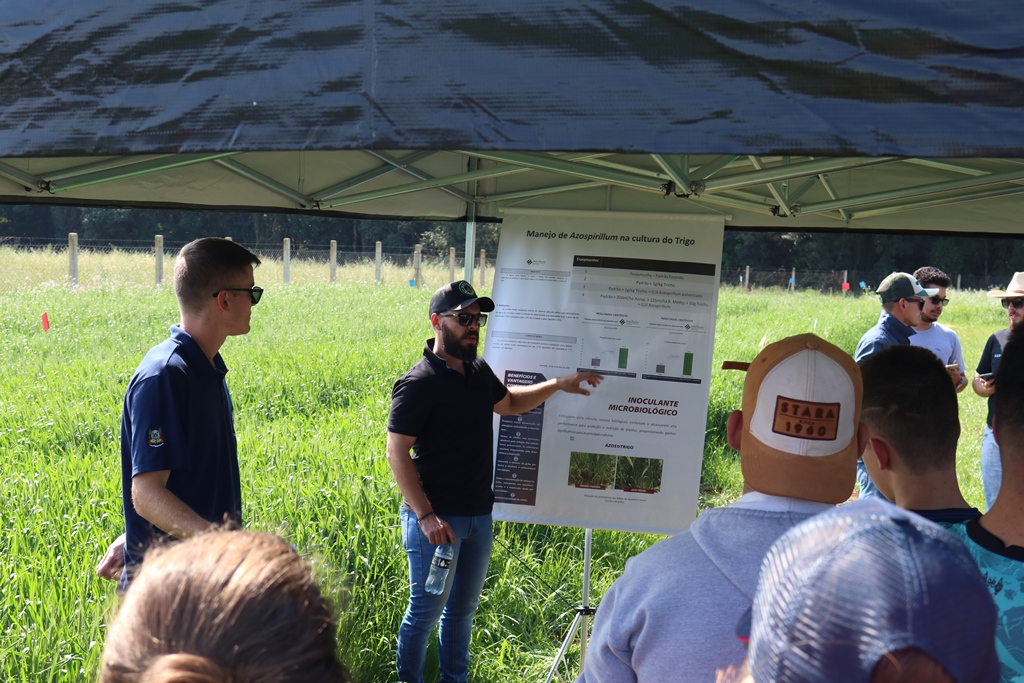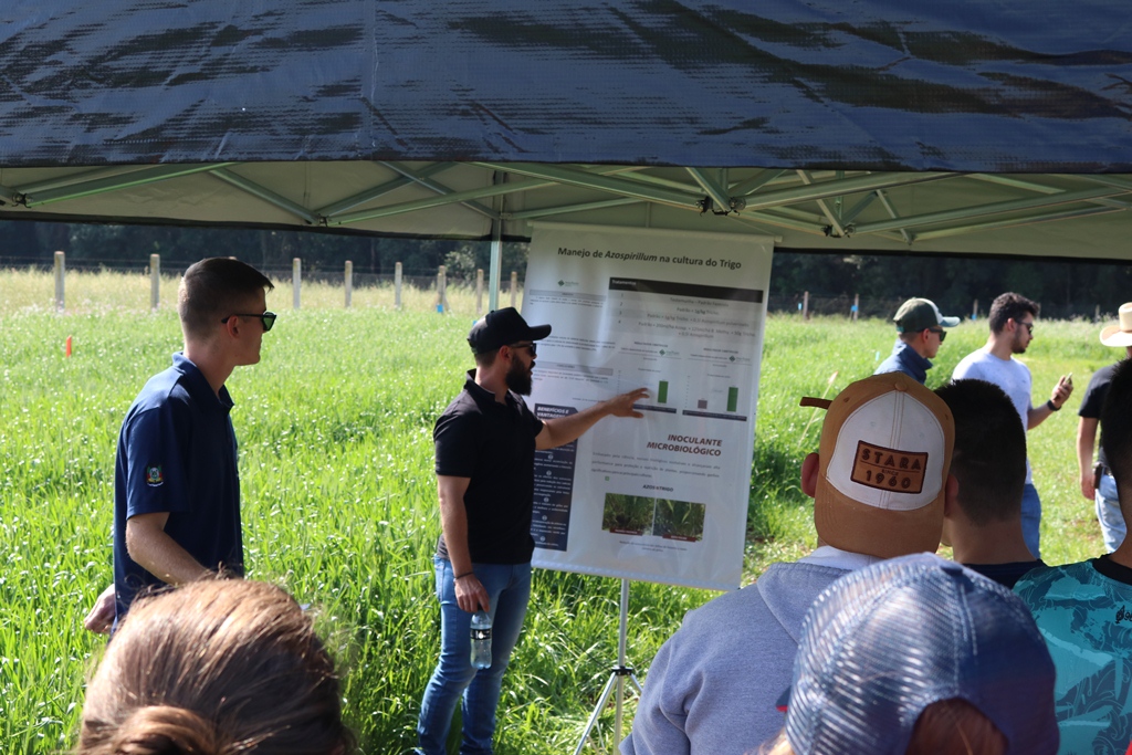 Foram apresentadas para os participantes as seguintes estações: Espectros gerais do cultivo do Trigo, Cobertura de Solo, Sistema Integração lavoura-pecuária, Tecnologia azospirilum e produção de cevada.