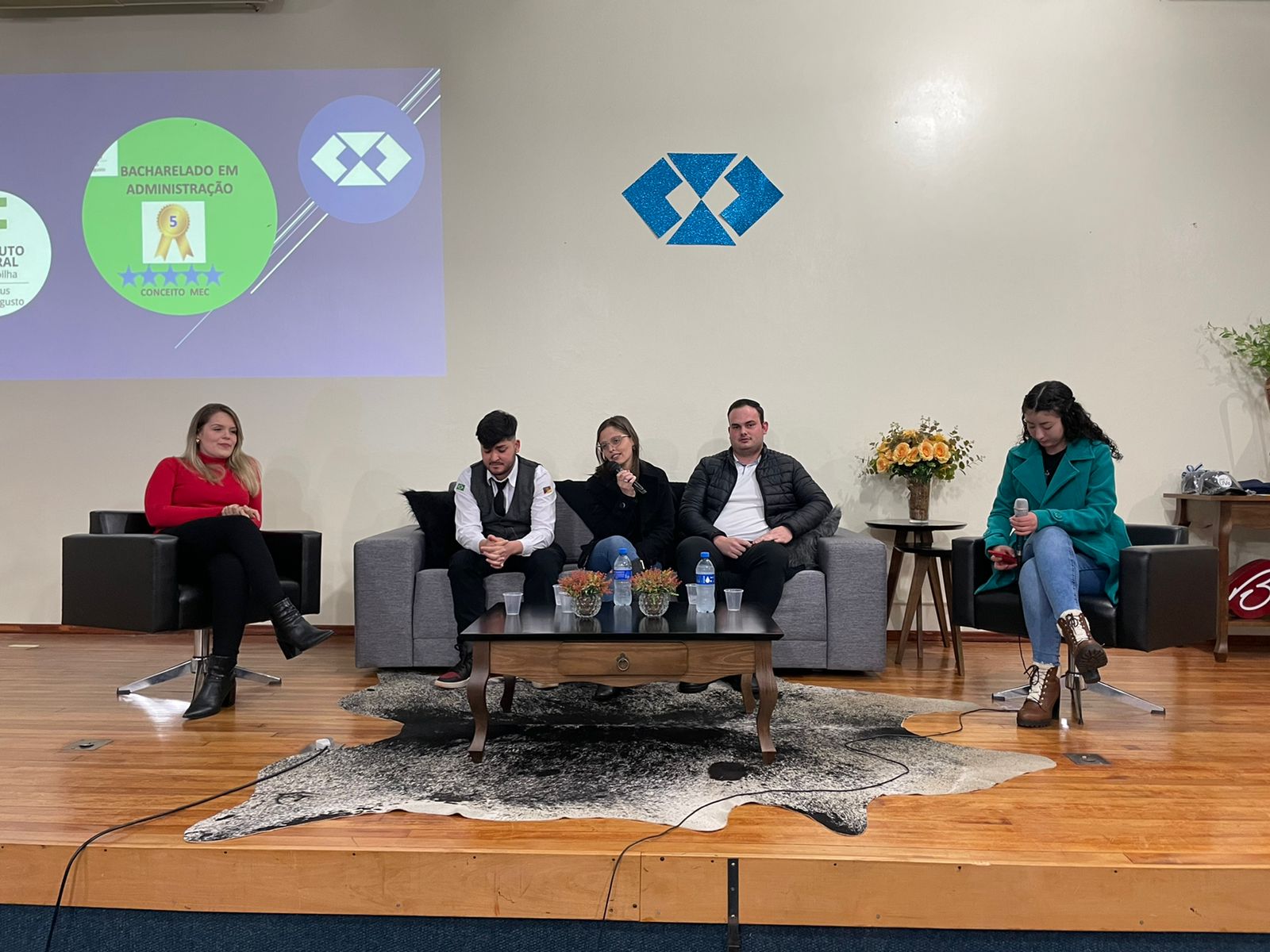 Na noite de terça-feira, dia 06, aconteceu uma roda de conversa com cinco egressos da 1ª turma do curso, sendo eles: Bruno Casagrande, Khetlyn Günter, Luna Vieira, Silaine Saggin e Vitor Dias. A atividade foi realizada em comemoração ao conceito 5 obtido pelo curso na avaliação do MEC, realizada no final de junho. A noite também contou com a apresentação musical de Diogo Atuatti e Matheus Matte.