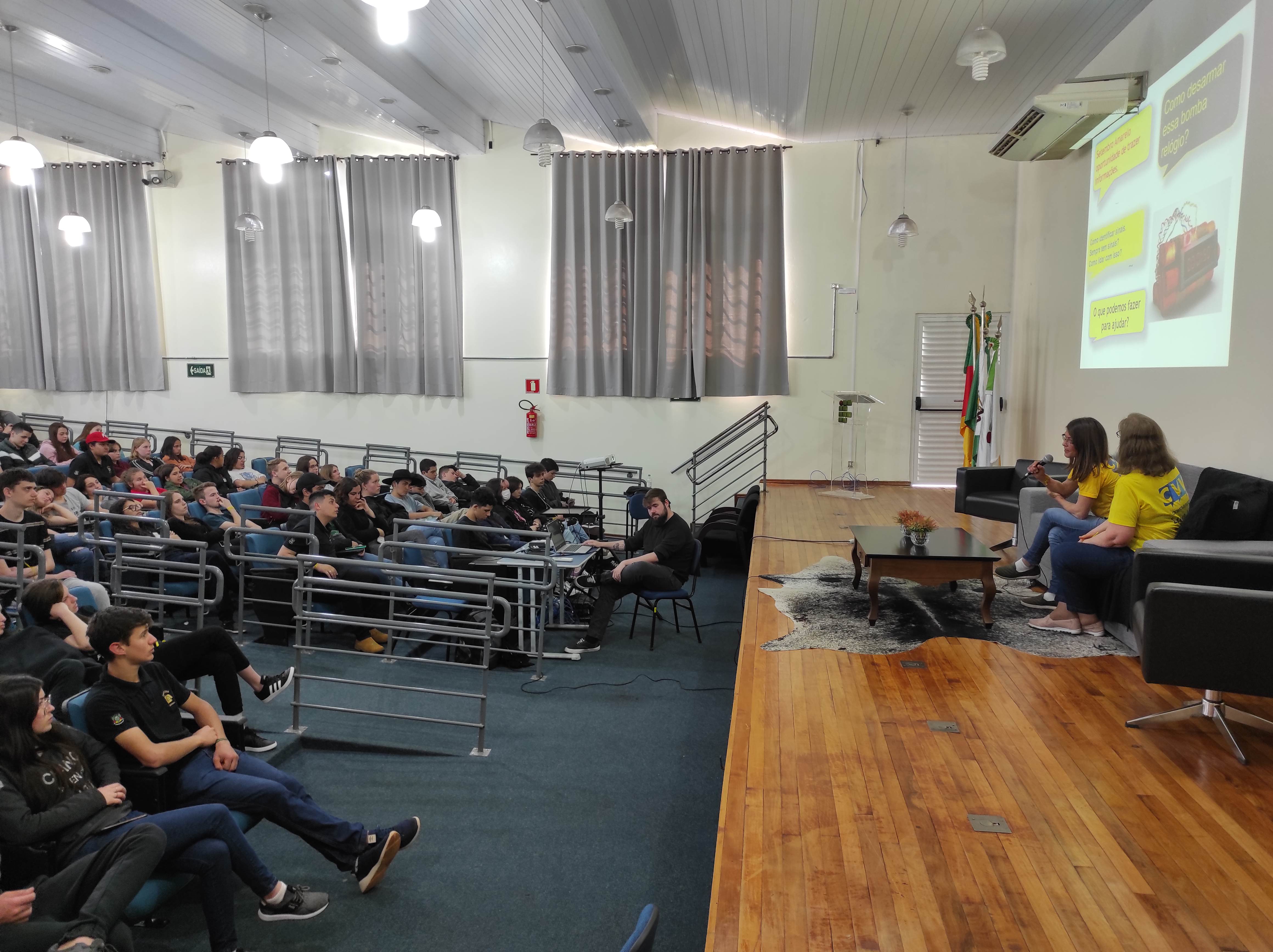 O IFFar - Campus Santo Augusto recebeu na tarde desta terça-feira, dia 13, as voluntárias do Centro de Valorização da Vida de Três de Maio – CVV, Flávia Hamerski e Cláudia Regina Demo, que palestraram para os estudantes dos cursos técnicos integrados ao ensino médio.