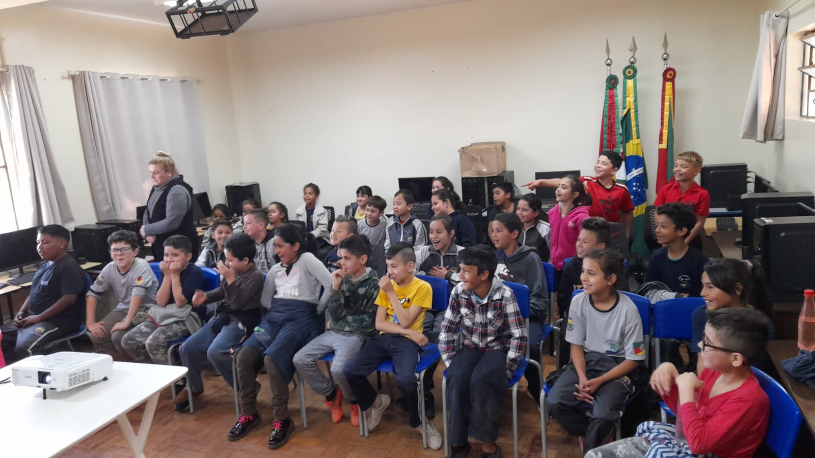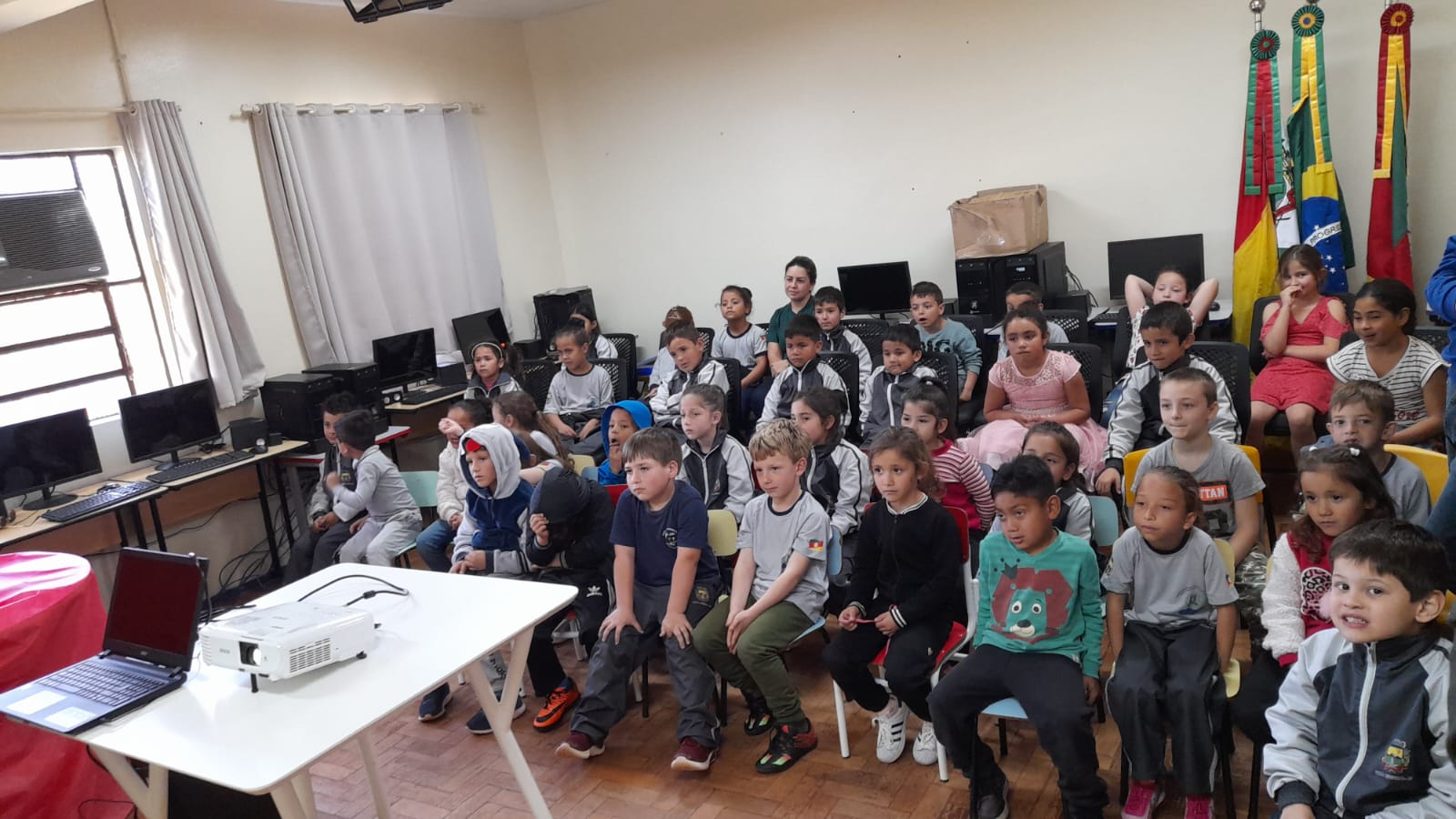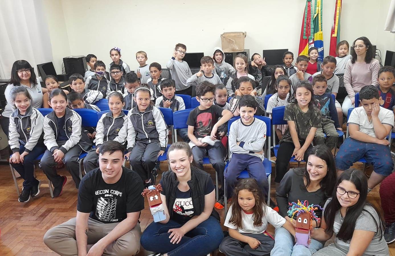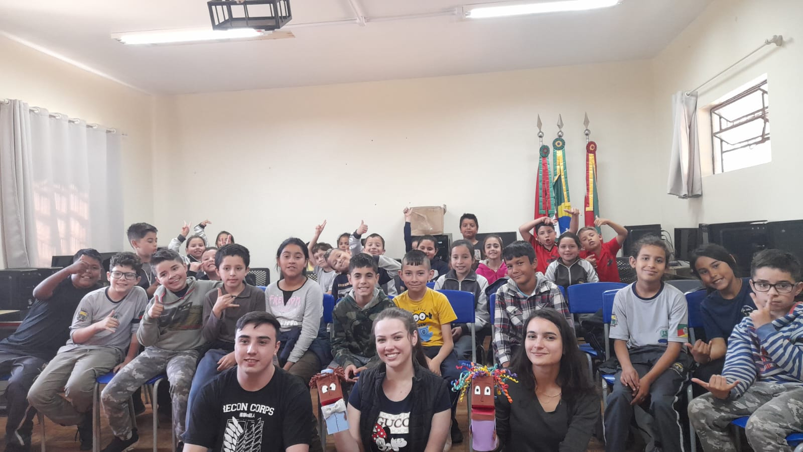Na tarde de hoje, os acadêmicos de Licenciatura em Ciências Biológicas do IFFar – Campus Santo Augusto, Danieli Bueno Schreiber, Guilherme Faustino Boelter e Thaís Luciane Morgenstern, apresentaram um teatro de fantoches e uma palestra com a temática “Lixo e Meio Ambiente”, para os alunos das séries iniciais da Escola Municipal Cívico Militar São João.