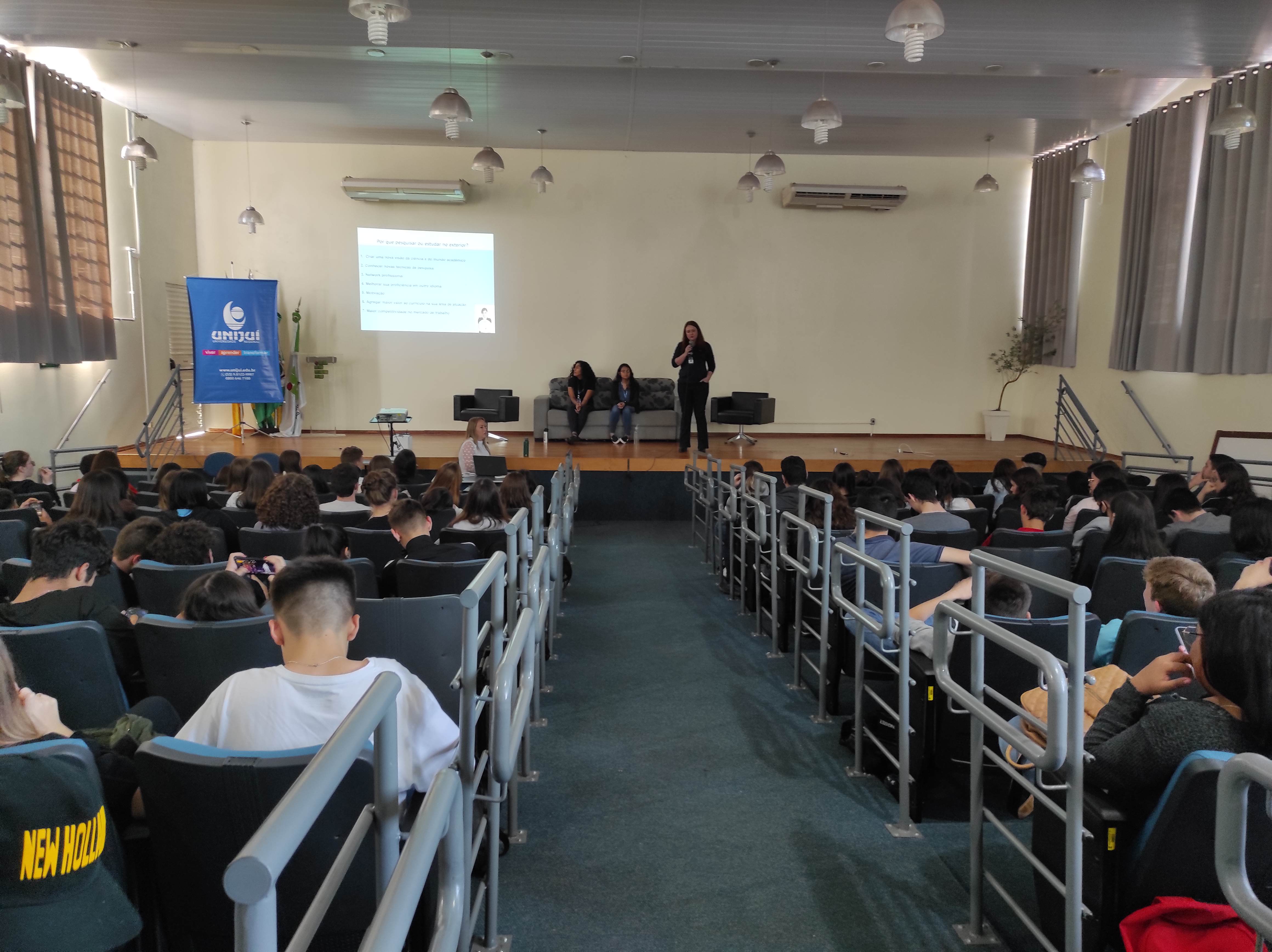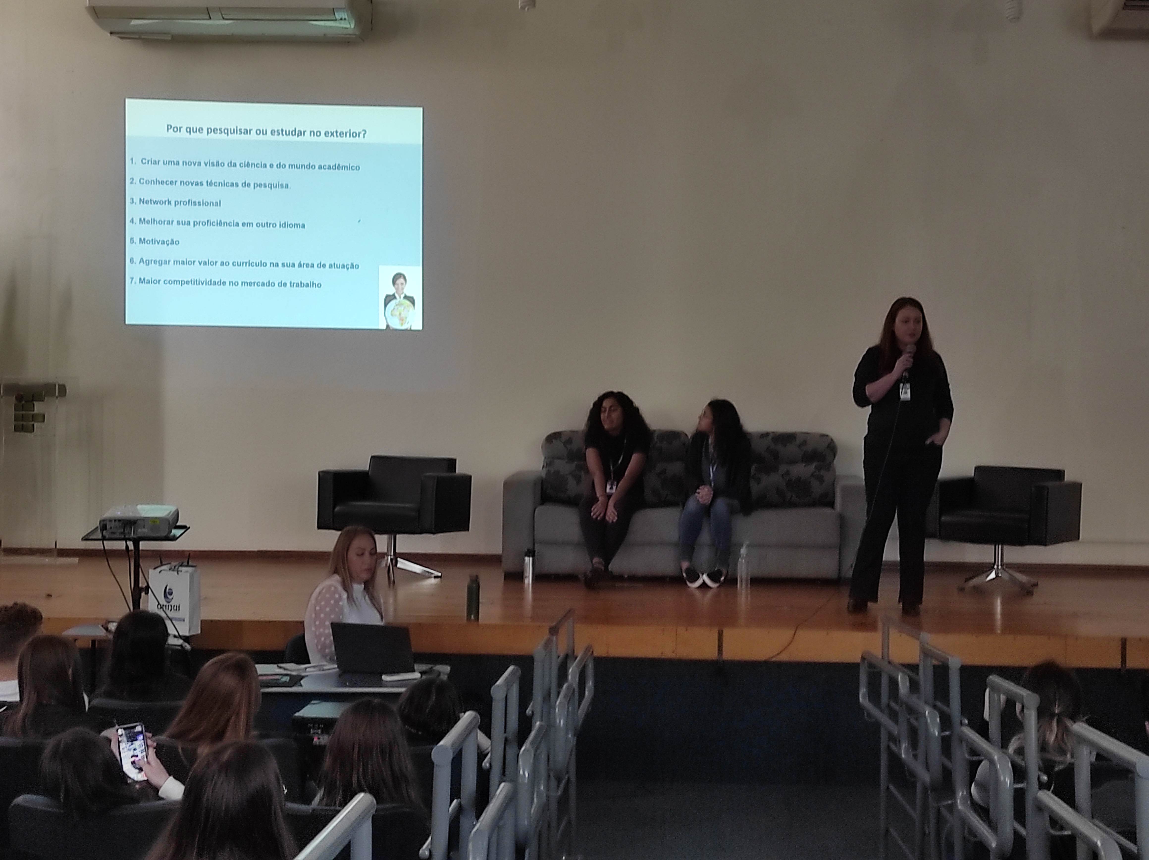 Na tarde de ontem, 26 de setembro, estudantes dos cursos técnicos integrados ao ensino médio do IFFar – Campus Santo Augusto, participaram no auditório da instituição, de uma Roda de Conversa com as professoras dos Estados Unidos, Nicole Bedoya e Krista Naomi Abrellano. À noite, foi a vez dos estudantes dos cursos superiores conversarem com as intercambistas, sobre suas experiências.