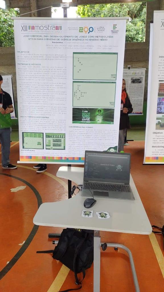 O Campus Santo Augusto foi premiado no evento em 3º lugar na Categoria Ensino pelo trabalho “Jogo Chemical Sam: Desenvolvimento de Jogos como Metodologia Ativa”, desenvolvido pelos estudantes do 3º ano do técnico em Informática, Camila Bregalda, Diego Breskovit Mocelli, Rafaela Gherke, Jonatan Hartmann e Davi Brasil Santos Mota, com a orientação dos professores Paulo Henrique de Oliveira e Pablo Nogara. As metodologias ativas consistem em colocar o aluno como autor de seu próprio processo de conhecimento, permitindo assim o desenvolvimento das habilidades do próprio aluno enquanto incentivam-no a melhorar suas habilidades por si mesmo, tornando-o independente e capacitado. O trabalho apresenta o desenvolvimento de um jogo educativo on-line, que introduz uma abordagem diferente dos métodos tradicionais, buscando uma compreensão mais efetiva dos estudantes, para os conteúdos relacionados à química orgânica.