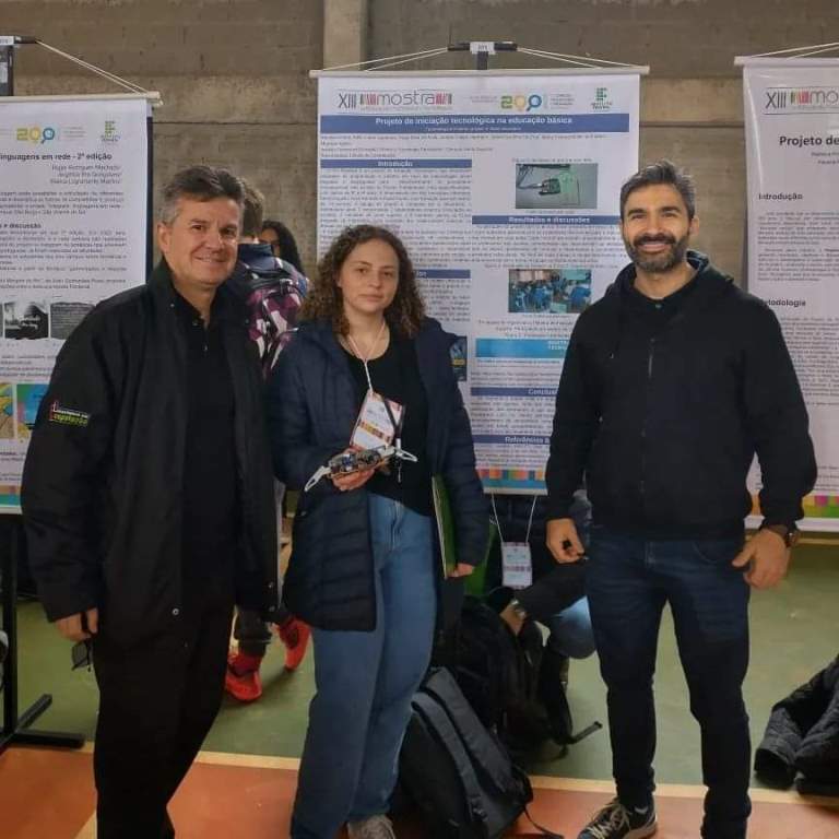 Bug Cup - equipe Chinelo Teleguiado 3.1.2, formada pelos estudantes, Jonatan Hartmann, Diego Breskovit Mocelli e Davi Brasil Santos Mota, sob a coordenação do professor Uianes Biondo,
