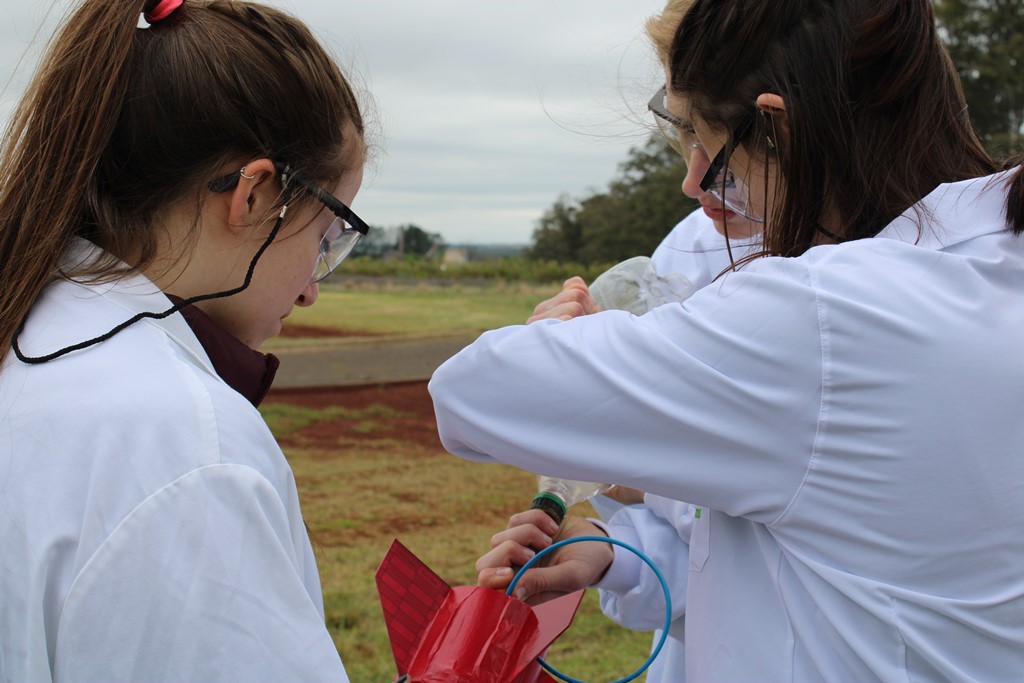 Mostra de Foguetes - estudantes Arthur Morgenstern Hagemann, Indyara de Lima Farezin