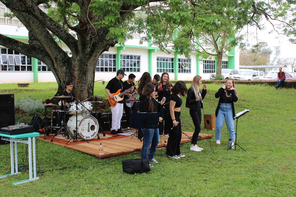 A Banda IF Musical do Campus Santo Augusto foi uma das atrações artísticas do evento, se apresentando no gramado do Campus Santo Ângelo durante o intervalo do almoço, garantindo momentos de alegria e descontração para estudantes e servidores que participaram da Mept.