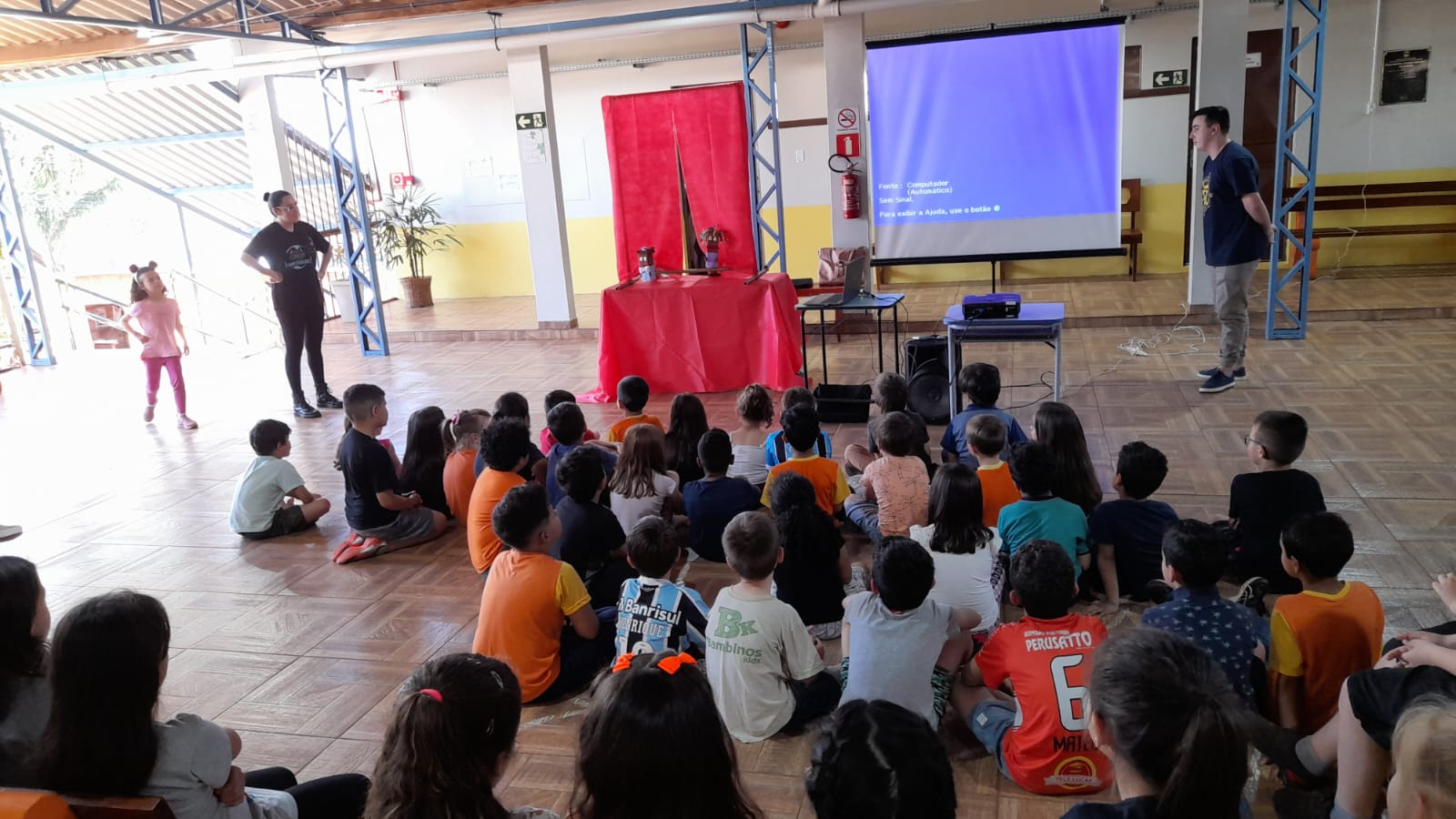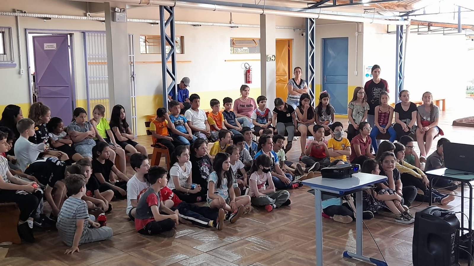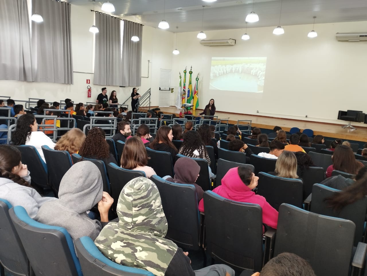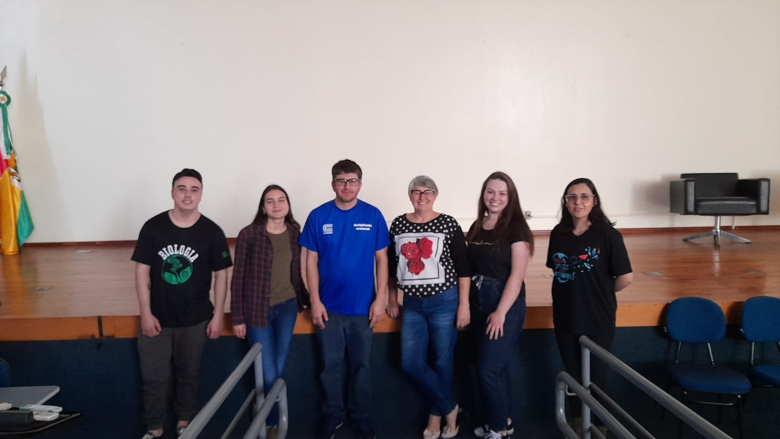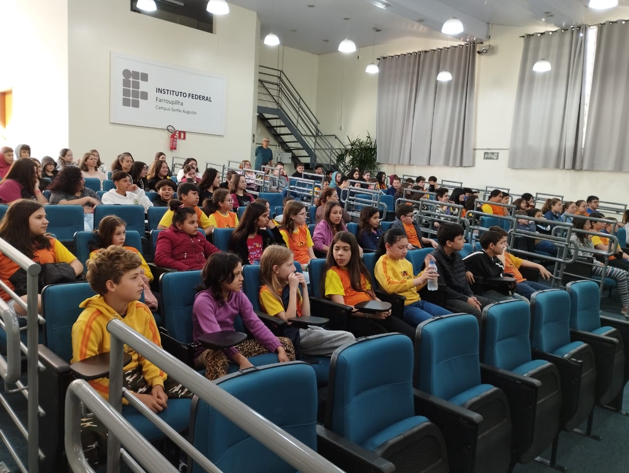 Na manhã desta quarta-feira, 19 de outubro, os acadêmicos de Licenciatura em Ciências Biológicas do IFFar – Campus Santo Augusto, Andressa Machado, Danieli Bueno Schreiber, Guilherme Faustino Boelter, Ricardo Johann e Thaís Luciane Morgenstern, ministraram uma palestra no auditório da instituição, com o tema “Água: qualidade e consumo consciente”, para cerca de 100 alunos e professores, do 5º ao 9º ano da Escola Municipal de Ensino Fundamental Sol Nascente. A atividade contou com a presença do servidor da Companhia Riograndense de Saneamento – CORSAN, Jeferson Oliveira.