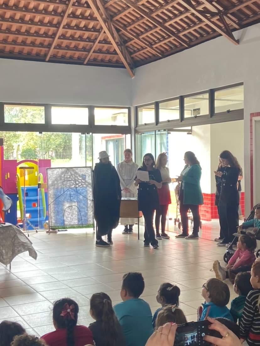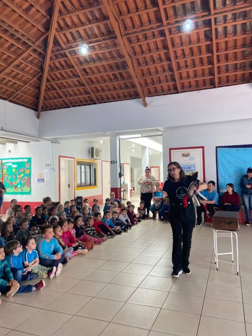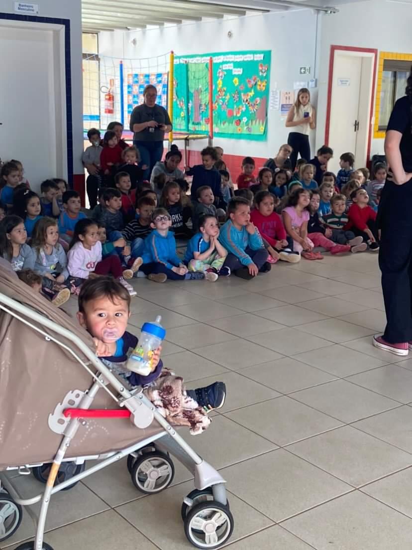 Na tarde de ontem, 18 de outubro, os integrantes do projeto de extensão “Biblioteca em Ação: contar, encantar e educar”, desenvolvido no IFFar – Campus Santo Augusto, promoveram uma Hora do Conto na Escola Municipal de Educação Infantil Vaga Lume.