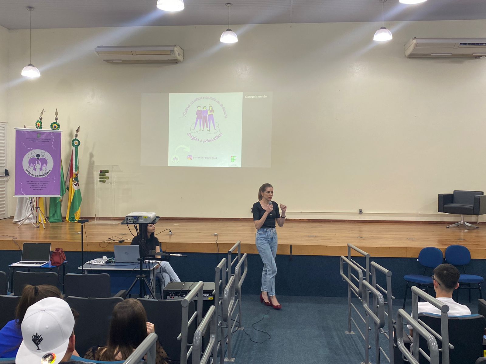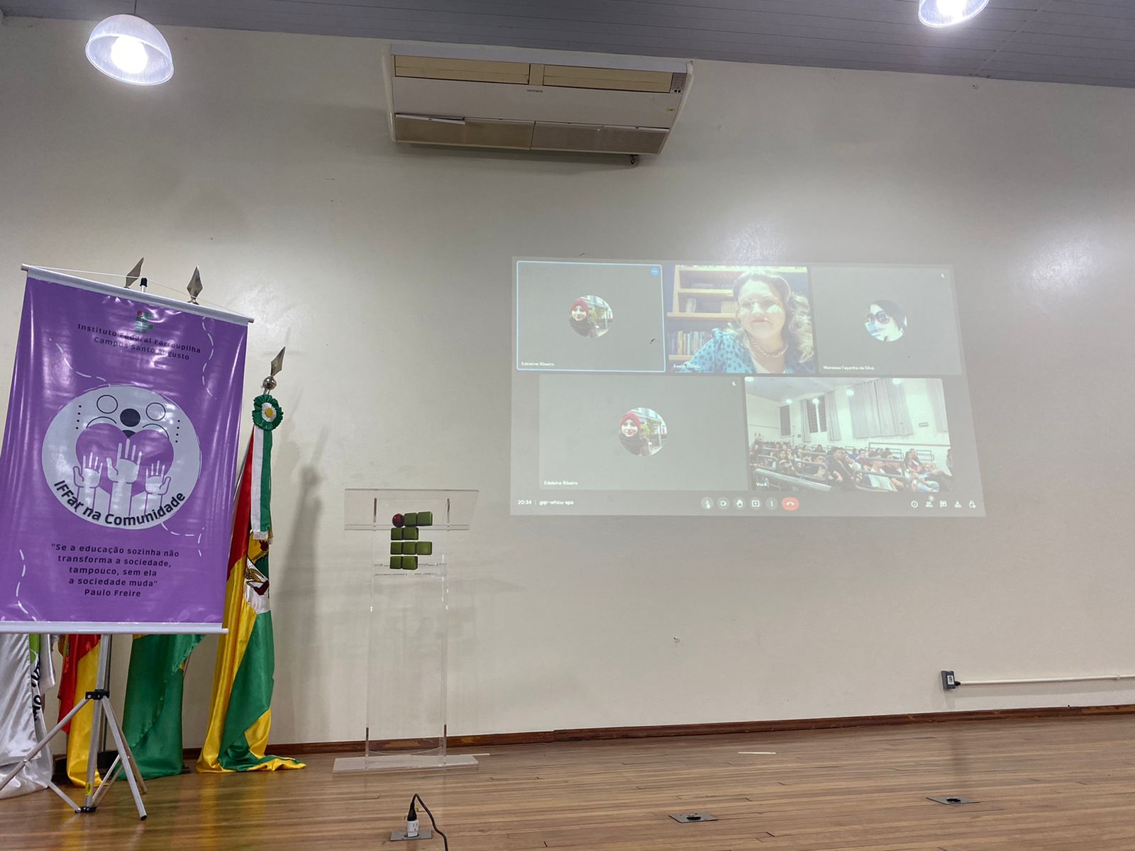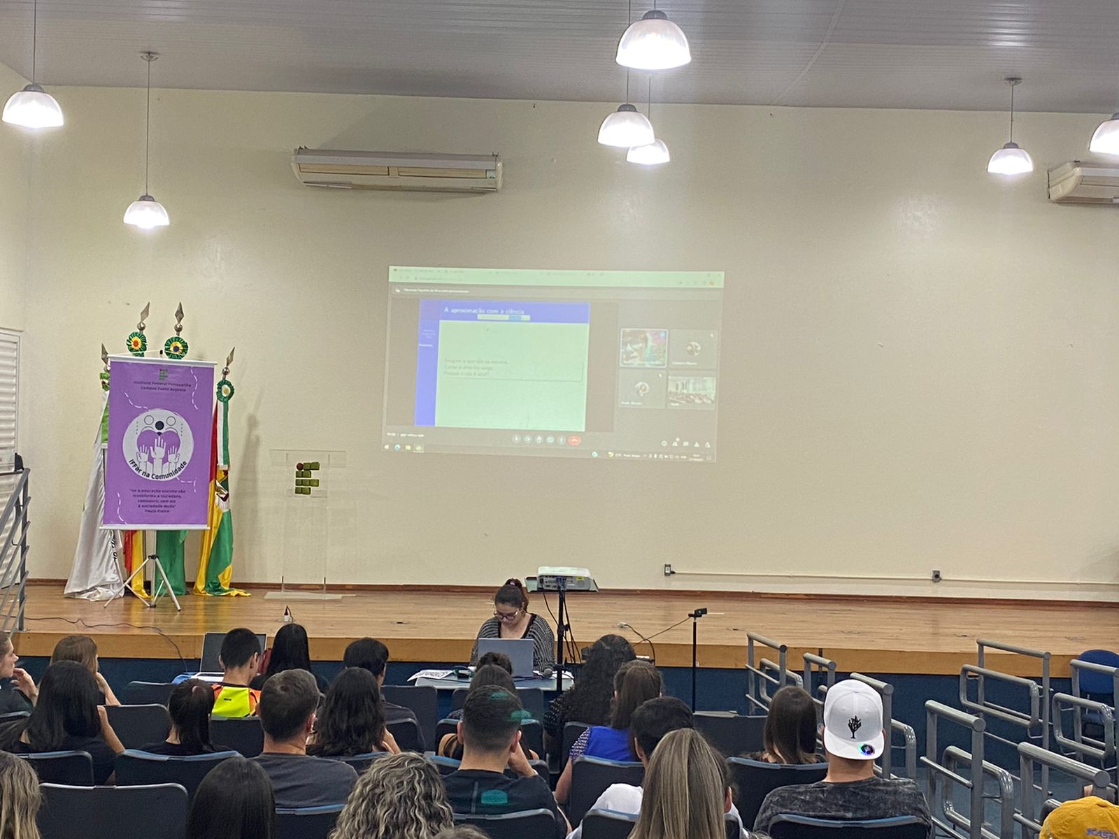 O projeto de Extensão IFFar na Comunidade promoveu na noite de quinta-feira, 27 de outubro, o evento “Mulheres na Ciência e no Mercado de Trabalho – desafios e perspectivas''. A programação contou com a presença de 120 pessoas, entre estudantes da instituição, estudantes convidados da Escola Estadual de Ensino Médio Santo Augusto e pessoas da comunidade.