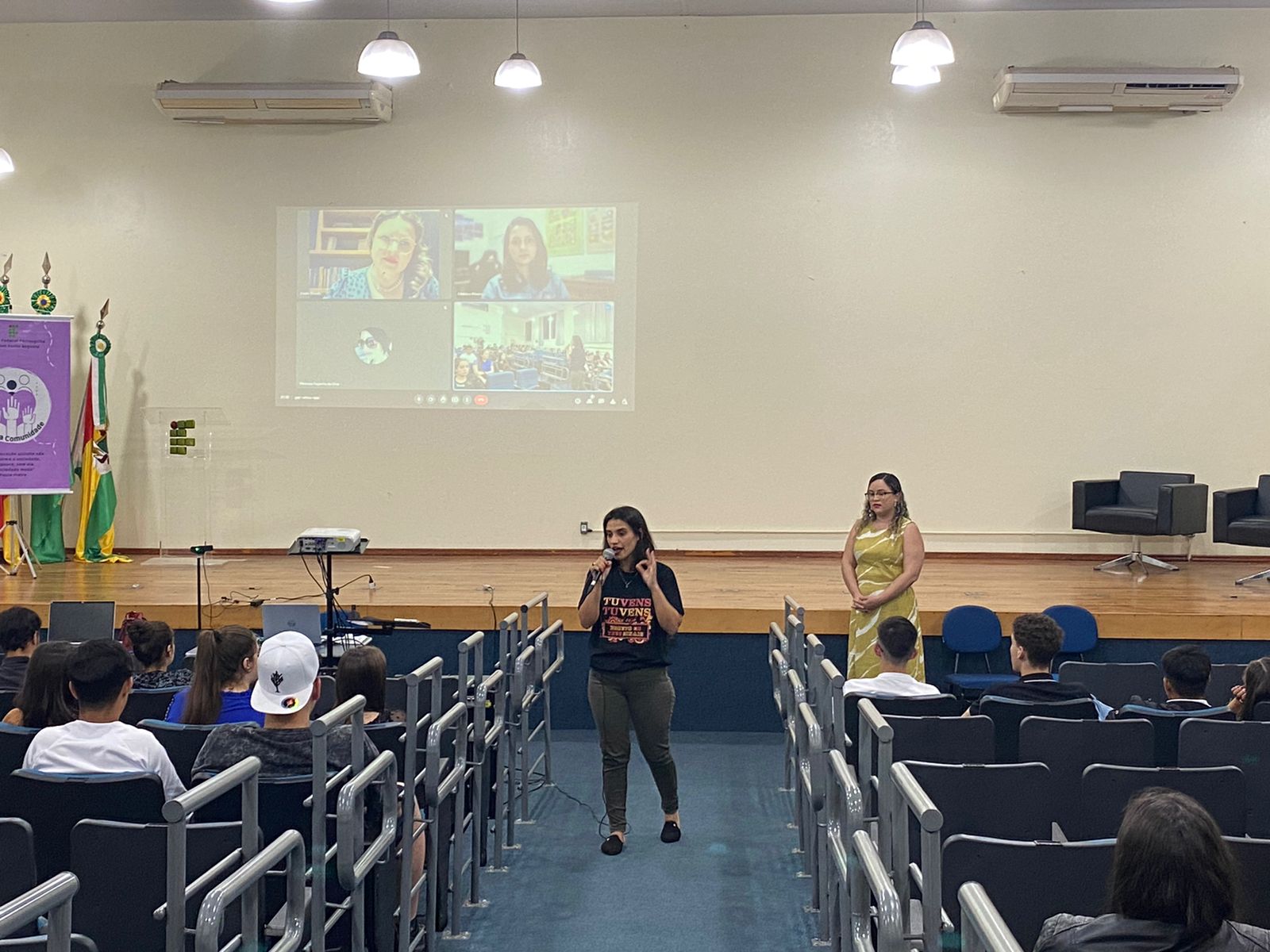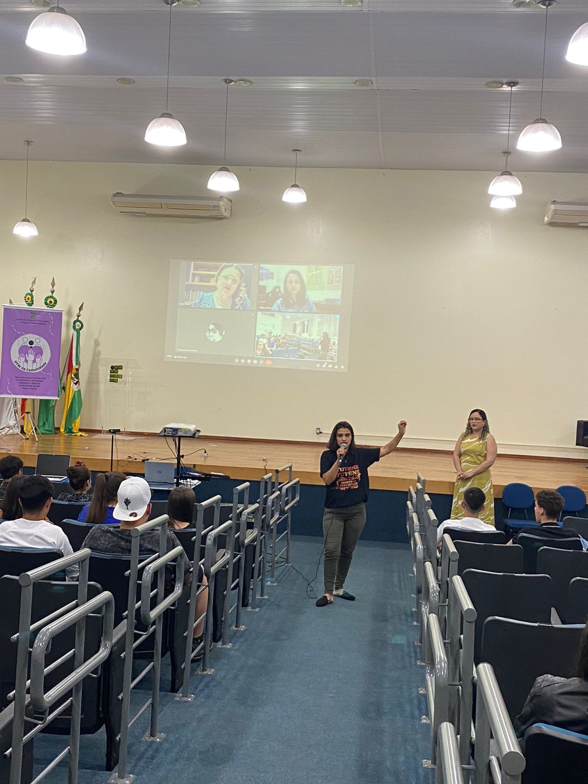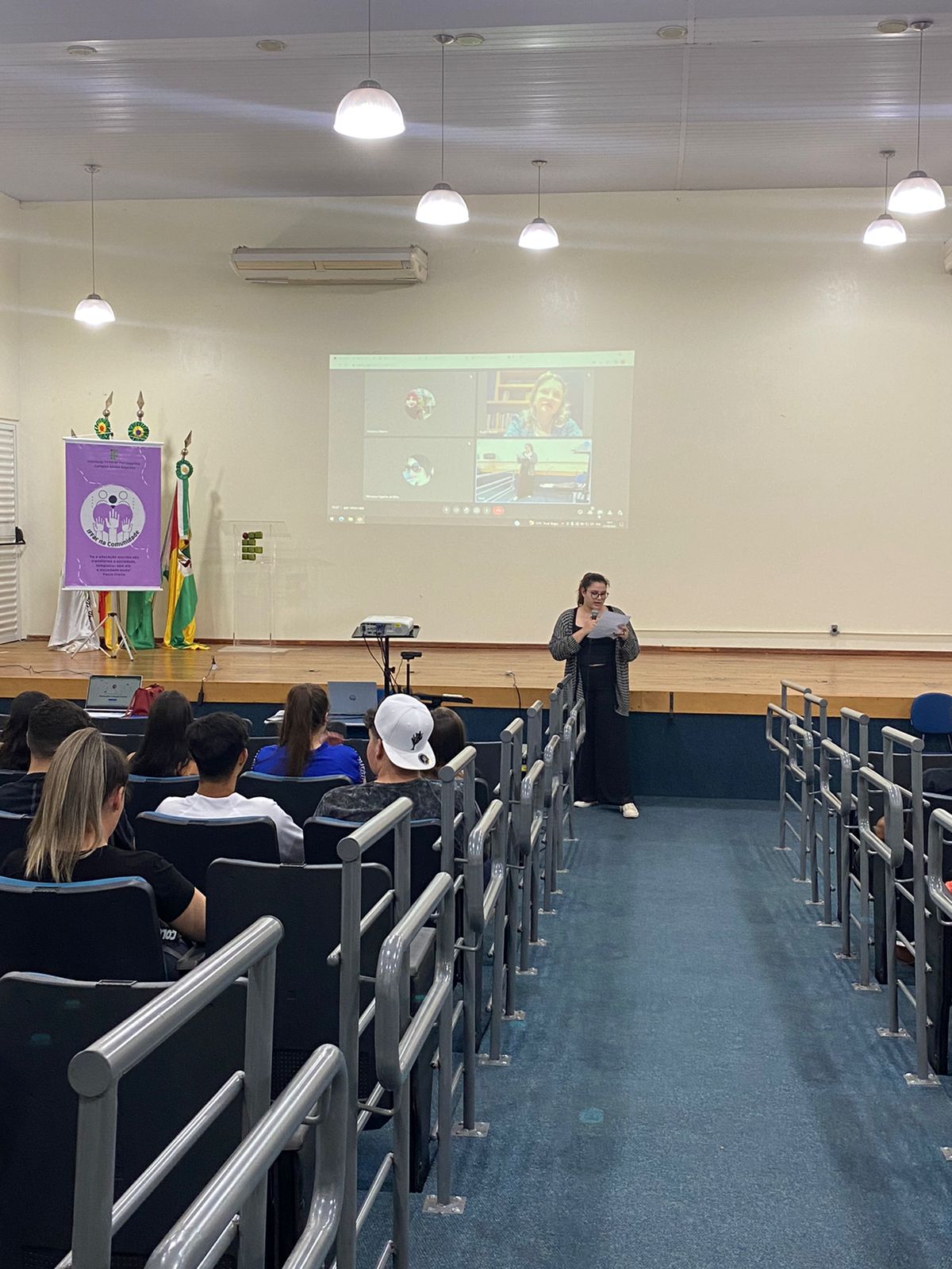 O projeto de Extensão IFFar na Comunidade promoveu na noite de quinta-feira, 27 de outubro, o evento “Mulheres na Ciência e no Mercado de Trabalho – desafios e perspectivas''. A programação contou com a presença de 120 pessoas, entre estudantes da instituição, estudantes convidados da Escola Estadual de Ensino Médio Santo Augusto e pessoas da comunidade.