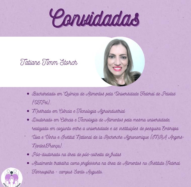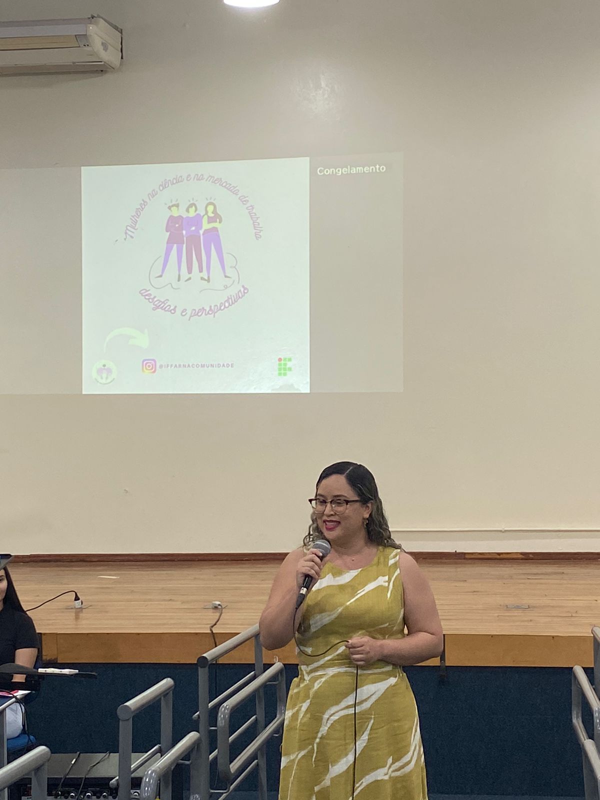 As palestrantes de diferentes regiões brasileiras, Wanessa Façanha da Silva, Karinne Menezes, Edsleine Ribeiro Silva, Evelin Cunha Biondo e Tatiane Storch, apresentaram a sua trajetória na produção científica brasileira e os desafios enfrentados pela mulher no mercado de trabalho, em diferentes áreas.